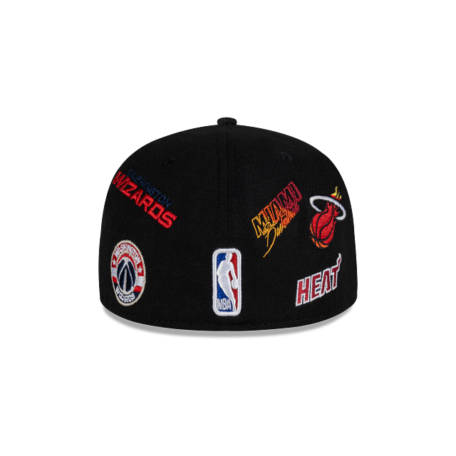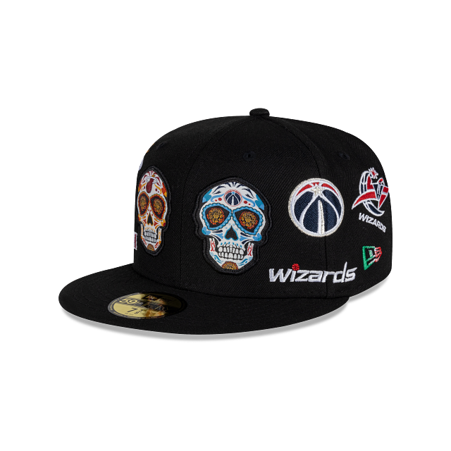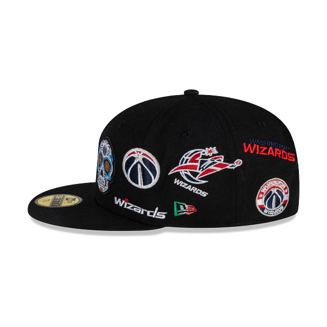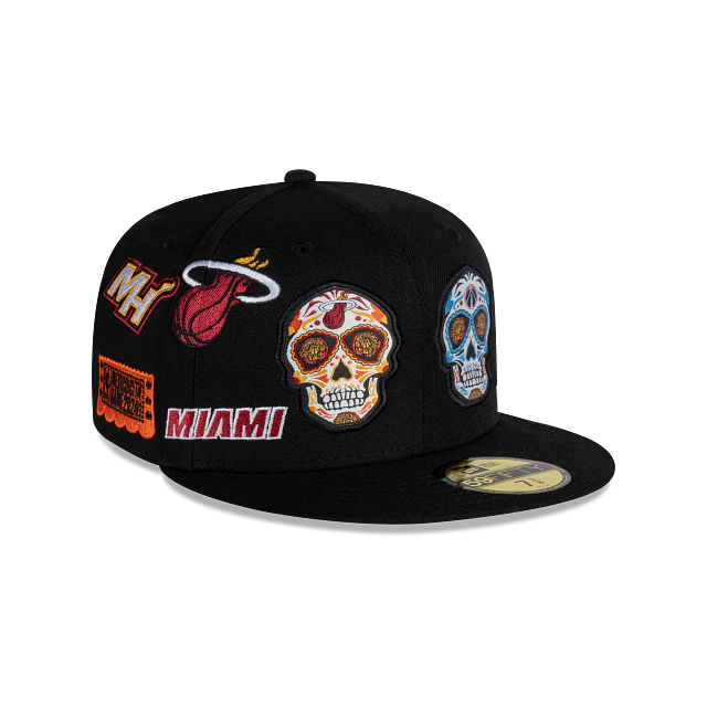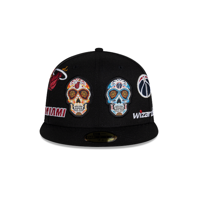 Esta gorra plana New Era 59FIFTY de la colección NBA Mexico City Game 2024 presenta un diseño All Over inspirado en el Día de Muertos con los logotipos y nombres de los equipos de Miami Heat y Washington Wizards, el logo de la NBA al reverso y el flag de New Era bordado del lado izquierdo. Apoya a tu equipo y cómprala ya.