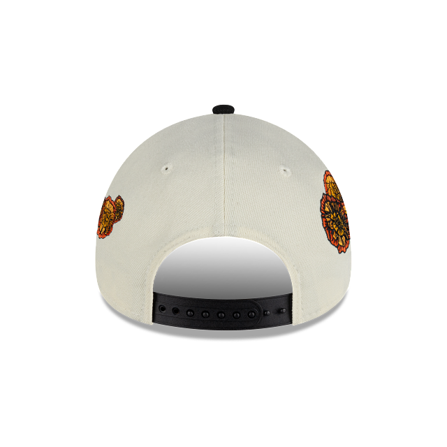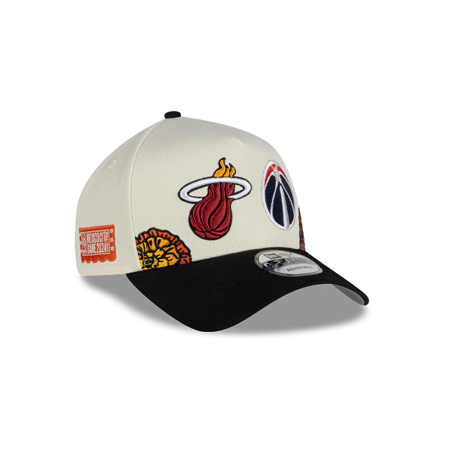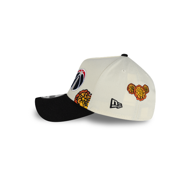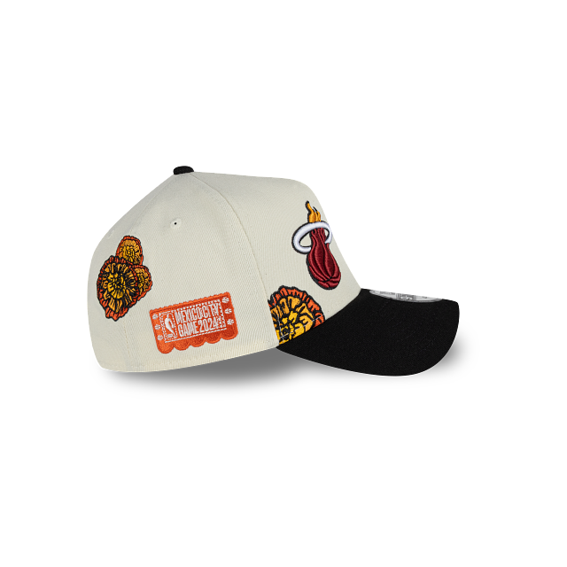 Esta gorra curva New Era 9FORTY AF de la colección NBA Mexico City Game 2024 presenta un diseño con los logotipos de los equipos de Miami Heat y Washington Wizards en los paneles frontales, flores de cempasúchil en la corona y el flag de New Era bordado del lado izquierdo. Cómprala ya.