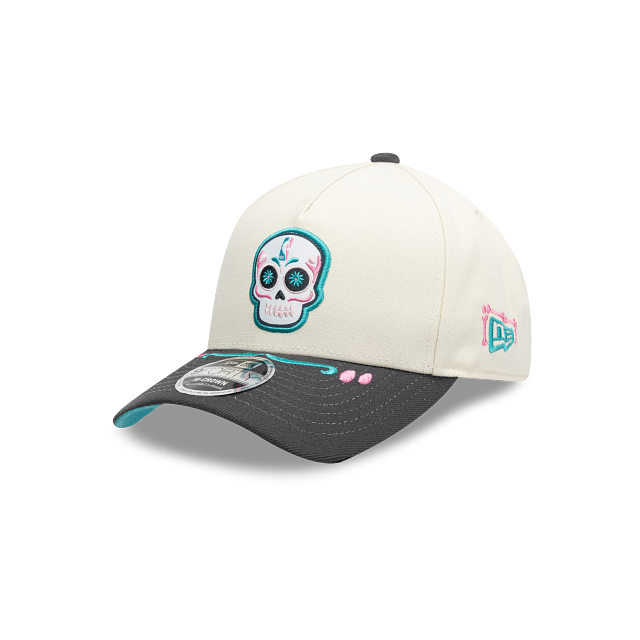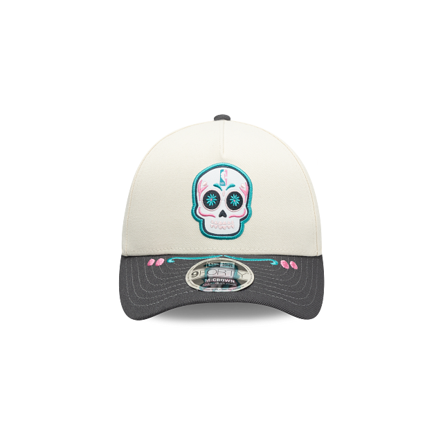 Esta gorra curva New Era 9FORTY A-Frame de la colección NBA Mexico City Game 2025 presenta un diseño inspirado en el Día de Muertos, el logotipo de la NBA dentro de una calaverita de azúcar bordada en los paneles frontales, el nombre de la NBA en la parte de atrás y el flag de New Era bordado del lado izquierdo. Cómprala ya.