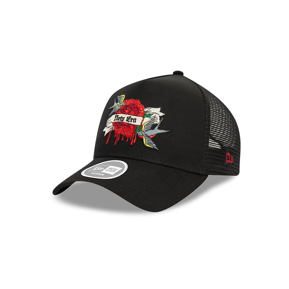 El arte urbano se expresa con esta gorra curva New Era 9FORTY para Mujer de la colección NE Diamond Tattoo que presenta un bordado de pájaros con brillos con el nombre de New Era en los paneles frontales, malla tipo trucker y el flag de New Era por la parte izquierda. Expresa tu estilo y cómprala ya.