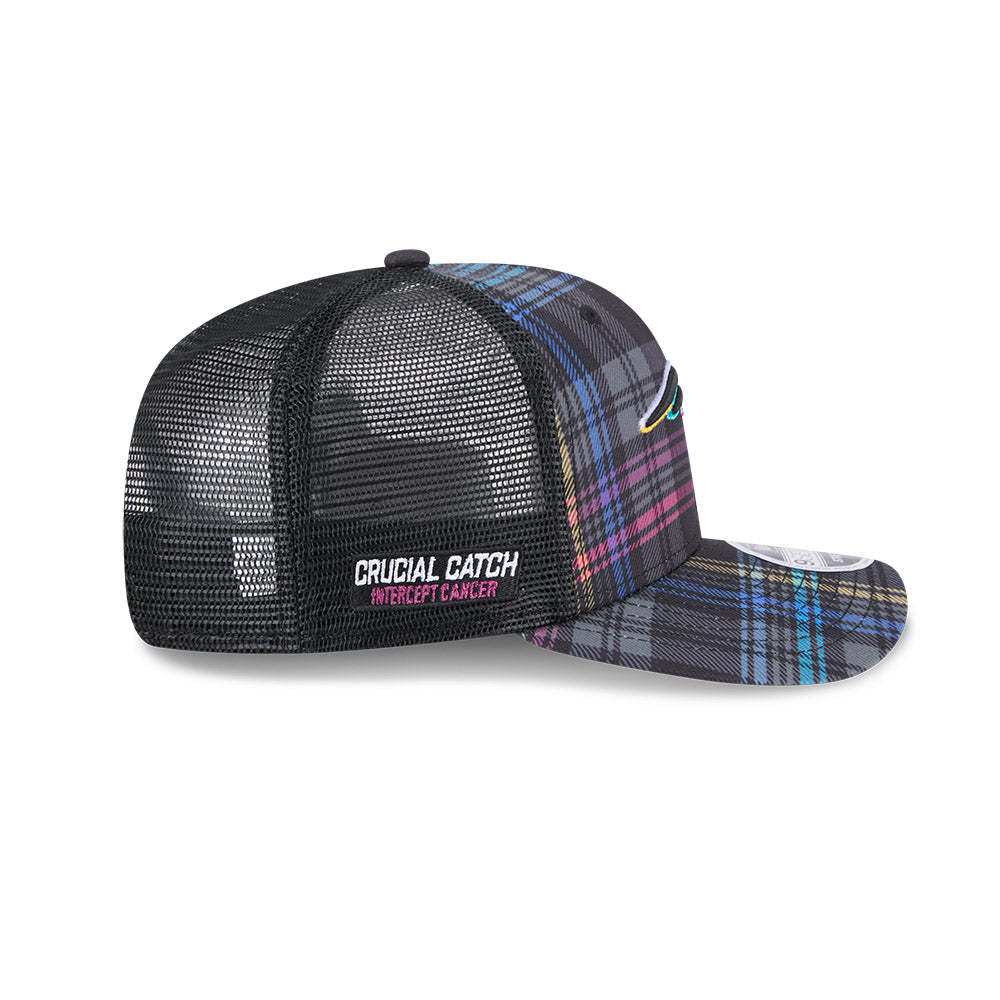 Esta gorra New Era 9SEVENTY de New England Patriots de la colección NFL Crucial Catch 2024 en pro de la lucha contra el cáncer presenta un diseño con el logotipo de los Patriots bordado en los paneles frontales, un parche Crucial Catch del lado derecho, malla trucker y el logo de la NFL al reverso y el flag de New Era bordado del lado izquierdo. Apoya a tu equipo y cómprala ya.