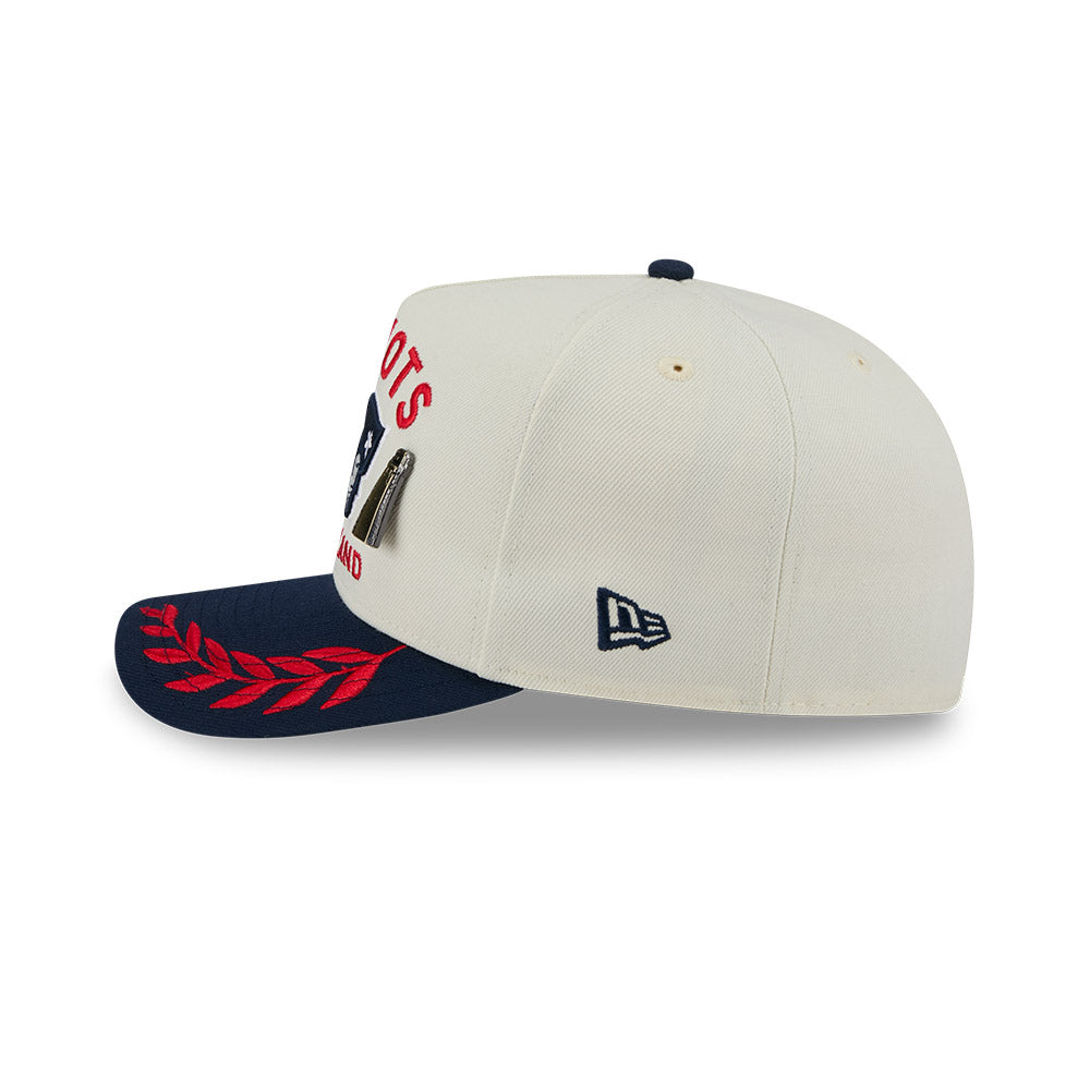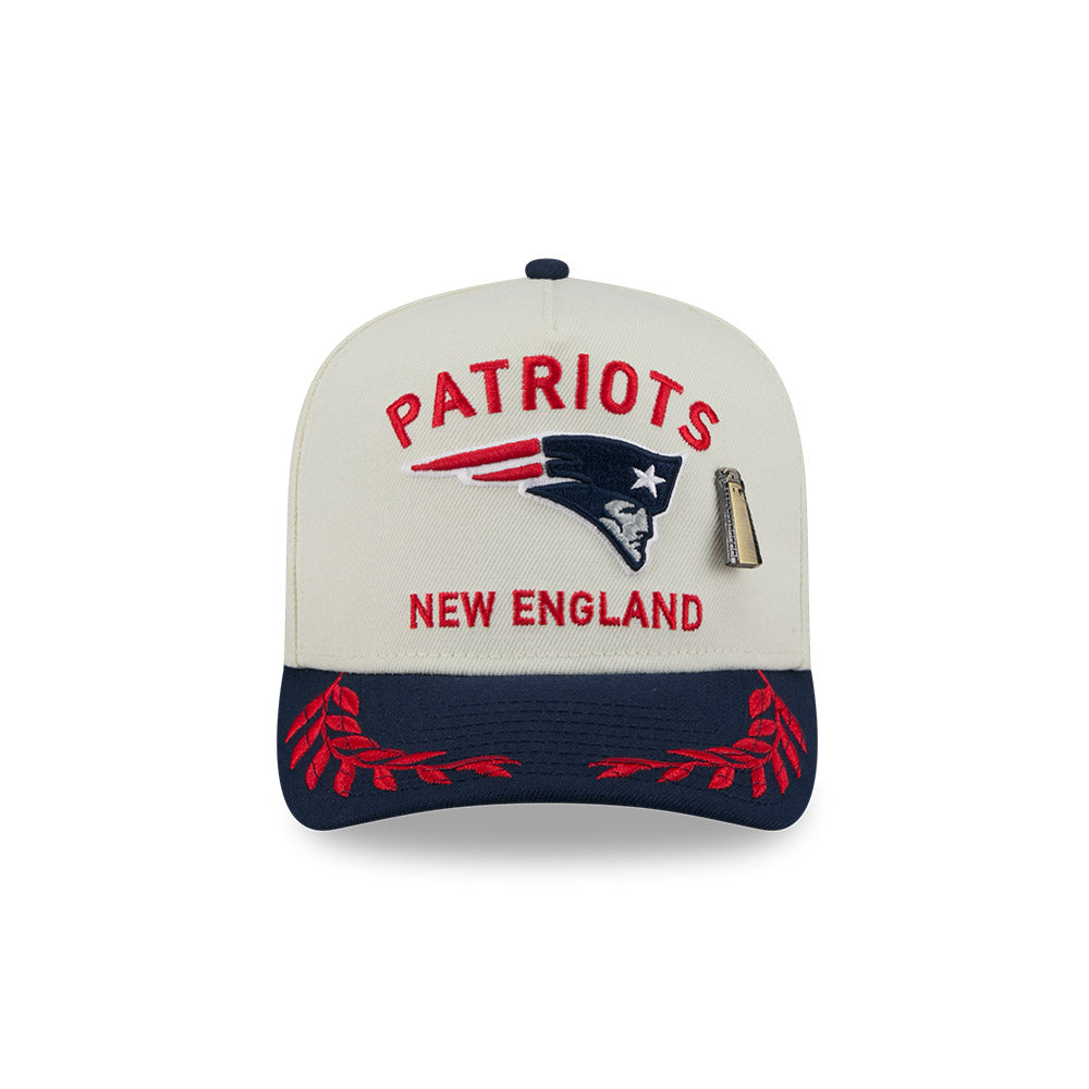 Esta gorra curva New Era 59FIFTY A-Frame de New England Patriots de la colección NFL Draft 2025 presenta el nombre y logotipo de los Patriots bordados en los paneles frontales junto con un pin representativo del equipo, laureles bordados en el visor, el logo de la NFL al reverso y el flag de New Era bordado del lado izquierdo. Cómprala ya.