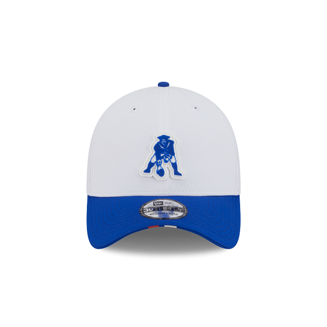 Esta gorra curva New Era 39THIRTY de New England Patriots de la colección NFL Training 2025 presenta una corona en color blanco con el logotipo de los Patriots engomado en los paneles frontales, el logo de la NFL al reverso y el flag de New Era engomado del lado izquierdo. Apoya a tu equipo y cómprala ya.