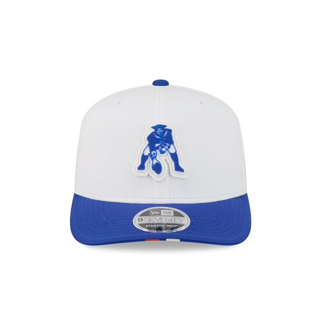 Esta gorra curva New Era 9SEVENTY Stretch Snap de New England Patriots de la colección NFL Training 2025 presenta una corona en color blanco con el logotipo de los Patriots engomado en los paneles frontales, el logo de la NFL al reverso y el flag de New Era engomado del lado izquierdo. Apoya a tu equipo y cómprala ya.