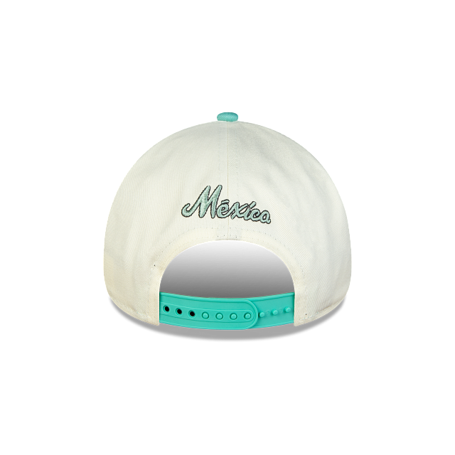 Esta gorra New Era 9FORTY de la colección New Era Alebrijes presenta un diseño two tone con la visera azul, corona blanca con un Quetzalcóatl bordado en los paneles frontales, broche ajustable al reverso, y el flag de New Era bordado en el lado izquierdo. Dale un toque a tu outfit y cómprala ya.