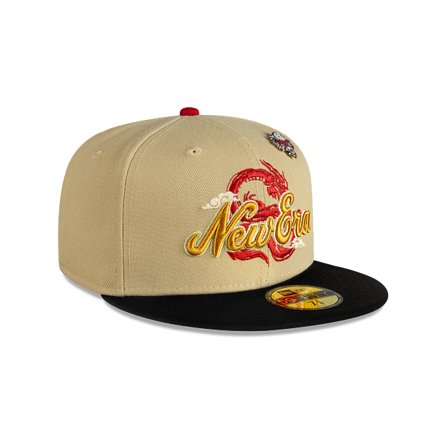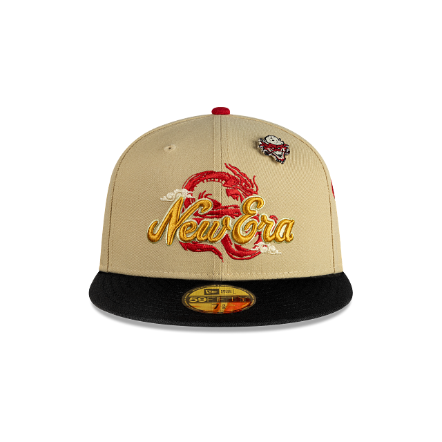 Esta gorra New Era 59FIFTY de New Era de la colección Año Nuevo Chino presenta el logotipo de los New Era bordado en los paneles frontales sobre un mitológico dragón chino color rojo que también destaca en un pin, detalles culturales en la corona, y el flag de New Era bordado en el lado izquierdo. No te pierdas este artículo de colección y cómprala ya.