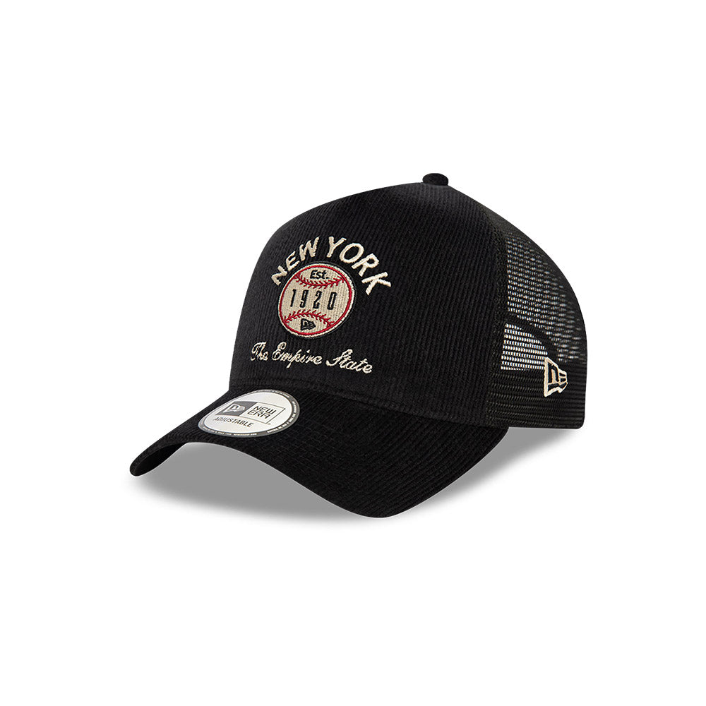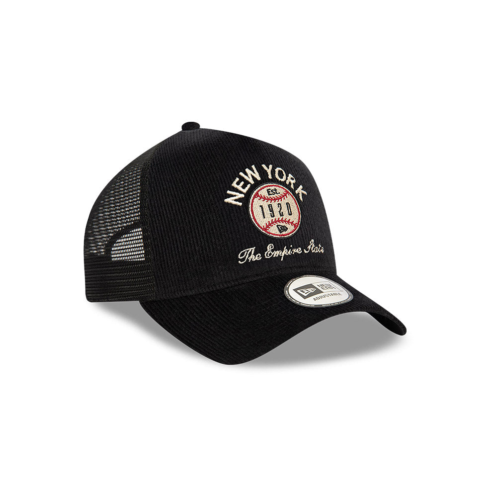 Esta gorra curva New Era 9FORTY AF de la colección New Era Brand Corduroy presenta un diseño en pana con el nombre de New York junto con una pelota de beisbol con el año de fundación de la marca en los paneles frontales, malla trucker al reverso y el flag de New Era bordado del lado izquierdo. Cómprala ya.