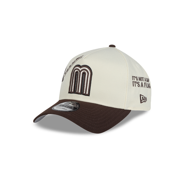 Esta gorra curva New Era 9FORTY A-Frame de la colección México Collection presenta presenta detalles en color café con la icónica M de México bordada en el panel frontal, insignias y frases de New Era en toda la corona, y el flag de New Era bordado del lado izquierdo. Cómprala ya.