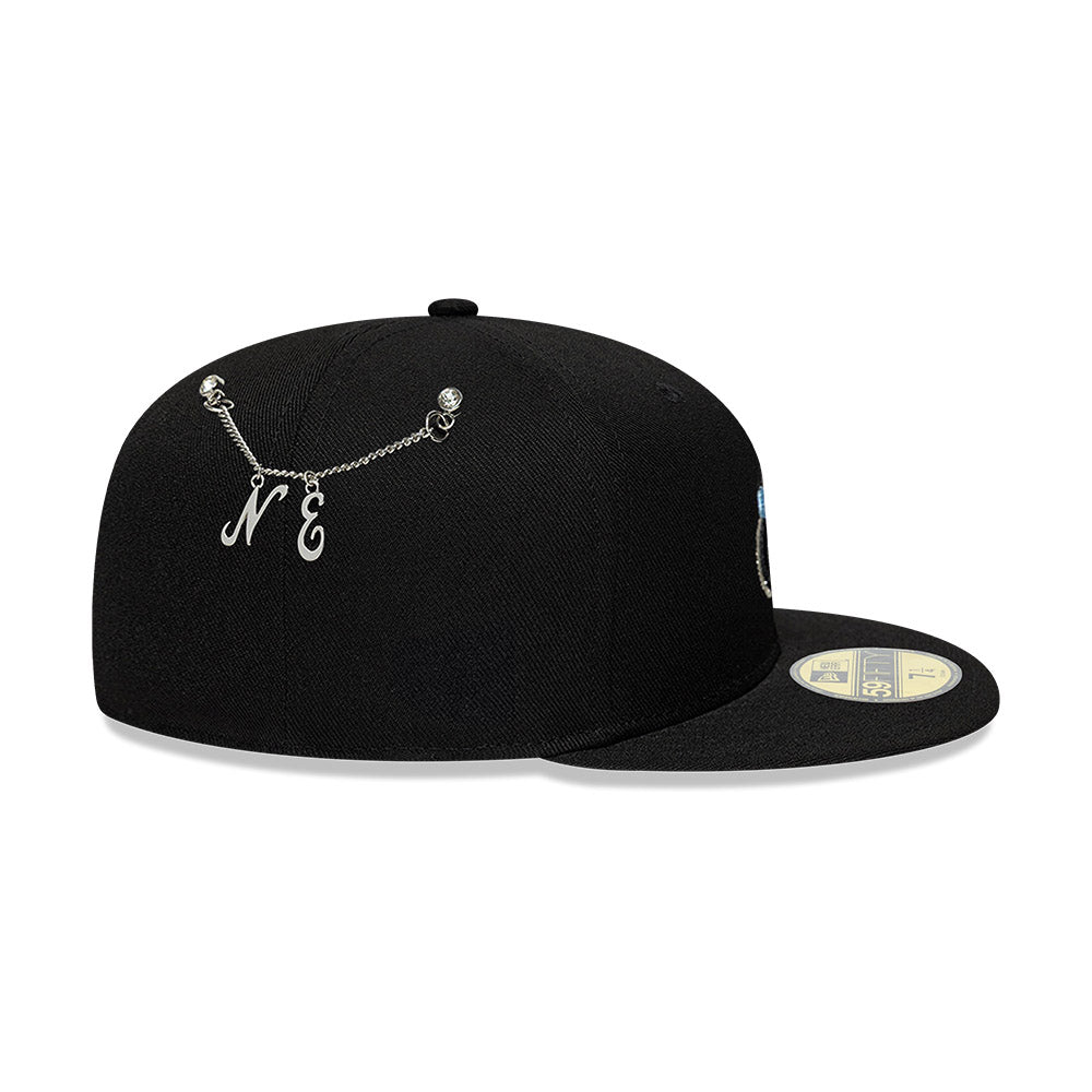 Esta gorra plana New Era 59FIFTY de la colección New Era Snow Icon presenta el logotipo de New Era con nieve bordado en los paneles frontales, cadena con pin del logo New Era del lado derecho y el flag de New Era bordado del lado izquierdo. Cómprala ya.