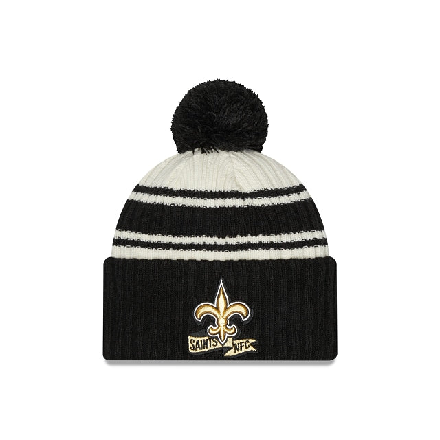 La temporada de la NFL ya esta aquí. Representa a tu equipo con este Knit de New Orleans Saints NFL Sideline 2022 Cold Weather el cual presenta el logo del equipo bordado al frente a juego con una bandera con el nombre y su conferencia, un parche de la NFL en el lado derecho y un logo del equipo en la parte trasera. Incluye pompón en la parte superior. Cómpralo ya.