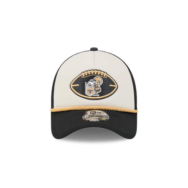 Esta gorra curva New Era 9FORTY AF de New Orleans Saints de la colección NFL Sideline Historic 2024 presenta un diseño con el logotipo histórico de los Saints dentro de un balón de futbol americano bordado en los paneles frontales, una decoración de cuerda trenzada en el visor, malla trucker y el logo de la NFL al reverso y el flag de New Era bordado del lado izquierdo. Apoya a tu equipo y cómprala ya.