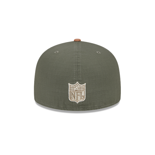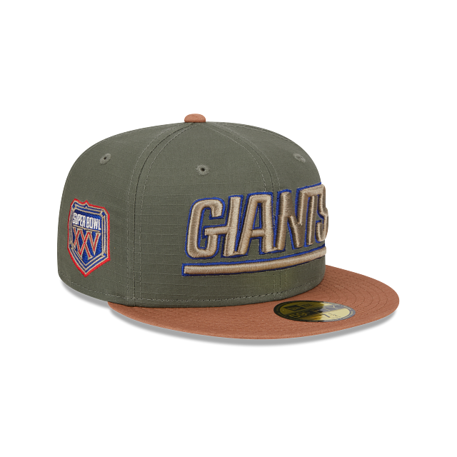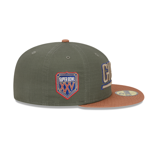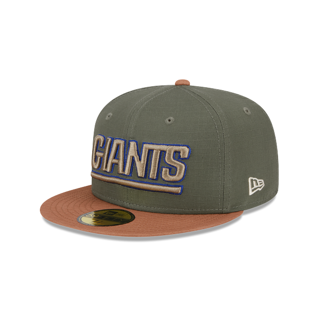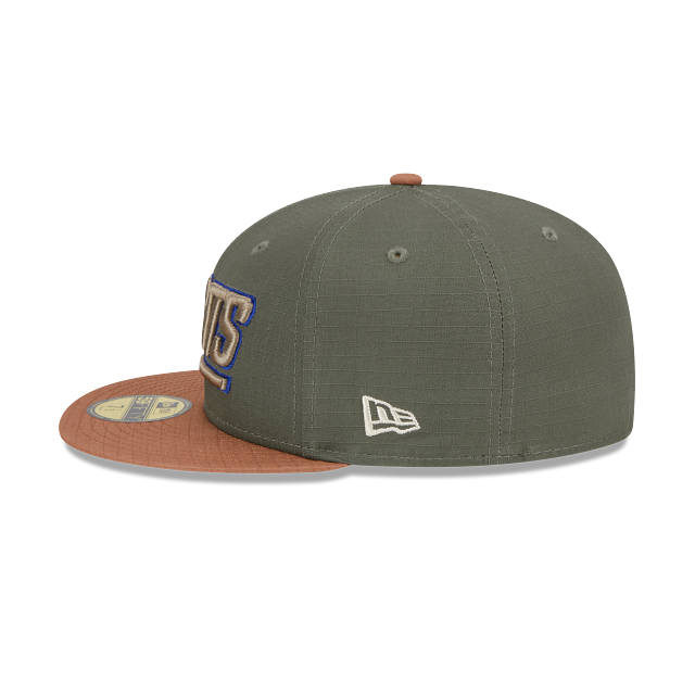 Esta gorra New Era 59FIFTY de New York Giants de la colección NFL Ripstop presenta un diseño two tone con la corona en color verde olivo y la visera café, el nombre de los Giants bordado al frente, un parche conmemorativo del lado derecho, el logo de NFL dorado al reverso y el flag de New Era bordado en el lado izquierdo. Apoya a tu equipo y cómprala ya.