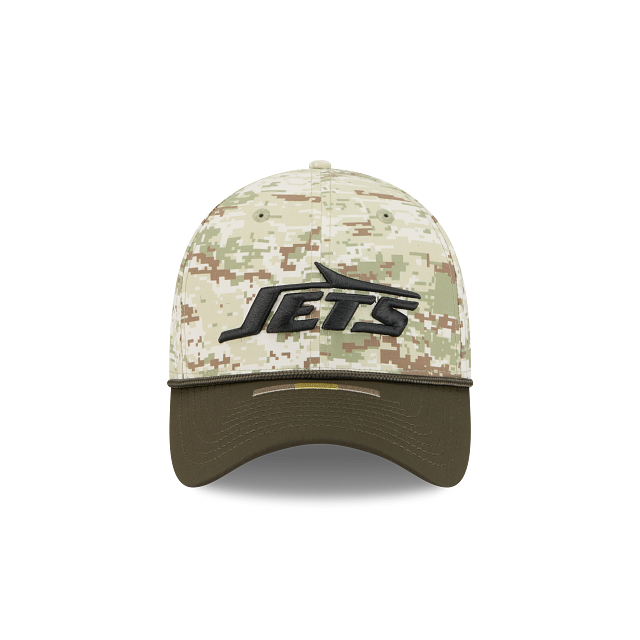 Esta gorra curva New Era 39THIRTY de New York Jets de la colección NFL Salute to Service 2025 presenta un diseño de camuflaje con el logotipo de los Jets bordado en los paneles frontales, la bandera de Estados Unidos del lado derecho, el logo de la NFL en la parte de atrás, el logo del equipo en el undervisor y el flag de New Era bordado del lado izquierdo. Cómprala ya.