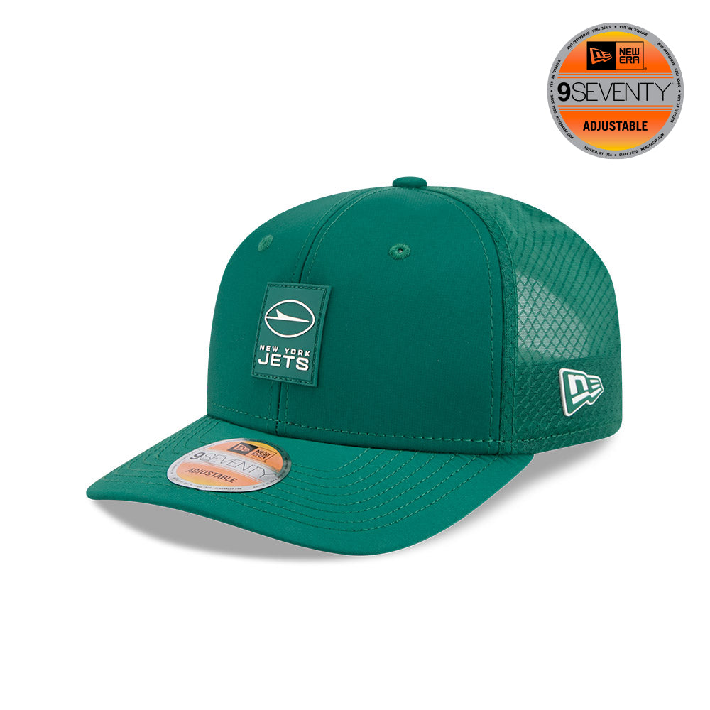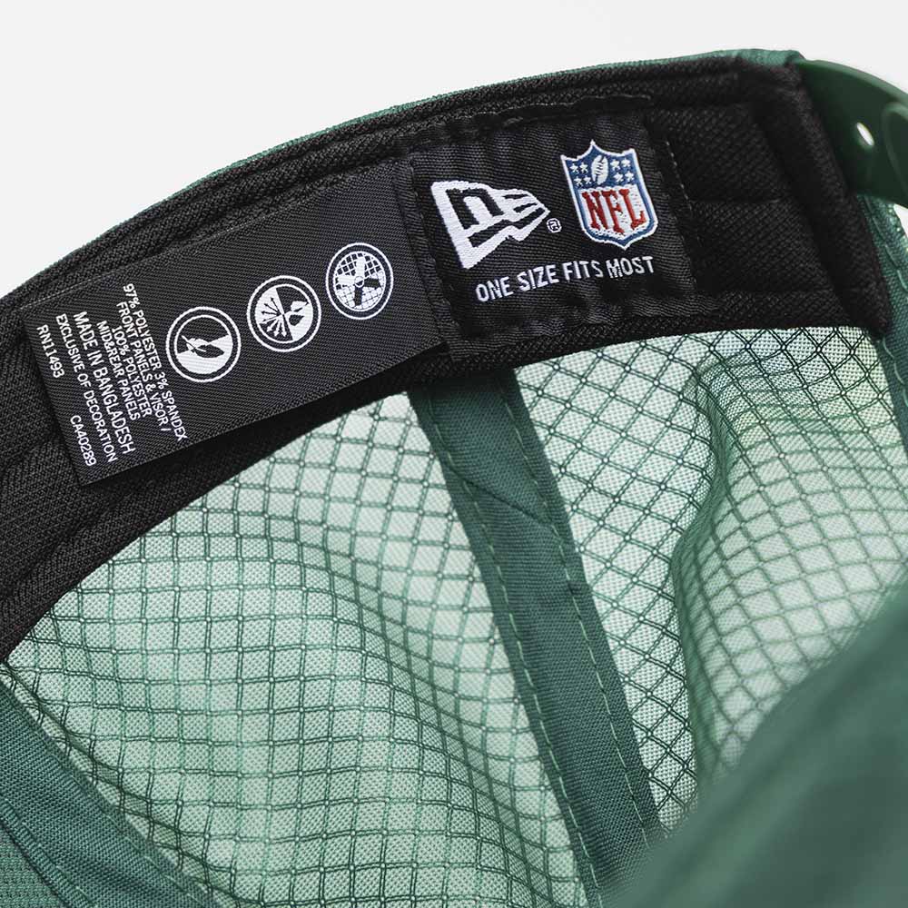 Presenta el logotipo de los Jets en silicón tipo engomado en los paneles frontales, malla trucker ligera para mejor ventilación, el logo de la NFL en la parte derecha de atrás y el flag de New Era engomado del lado izquierdo. Apoya a tu equipo y cómprala ya.
