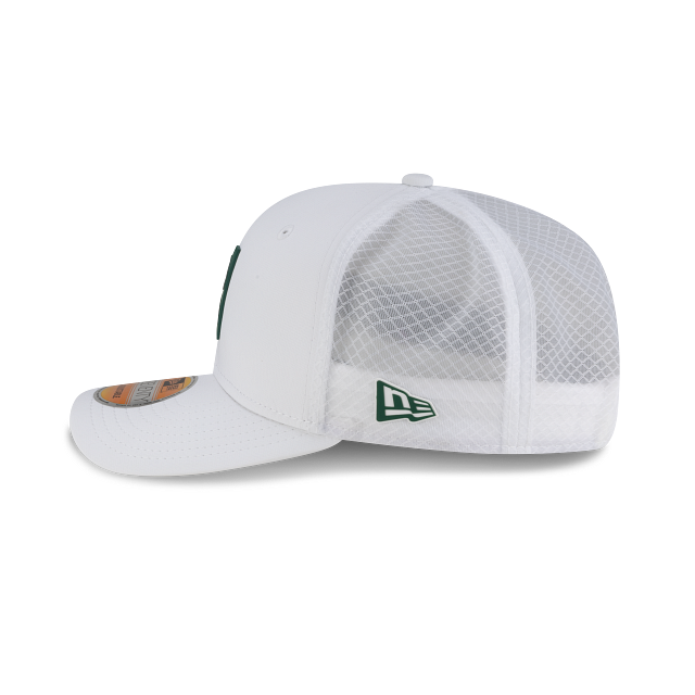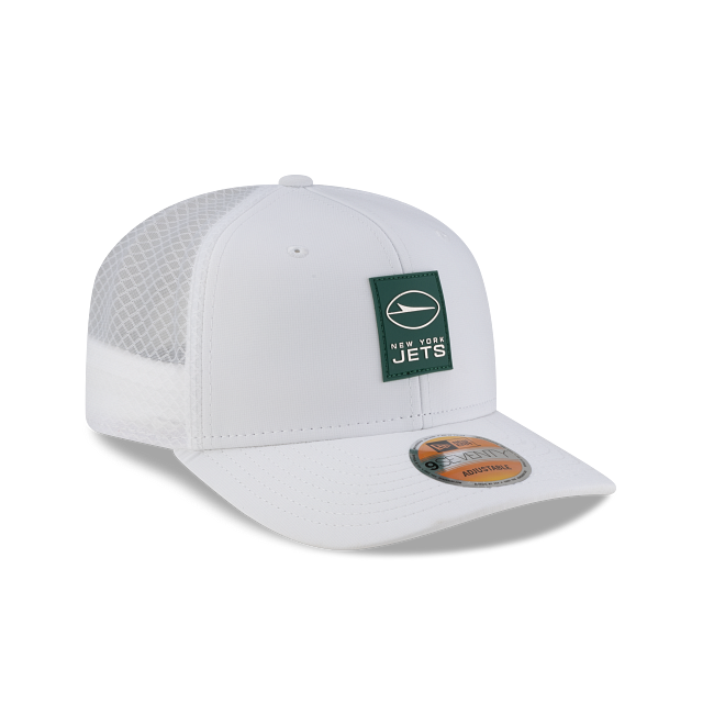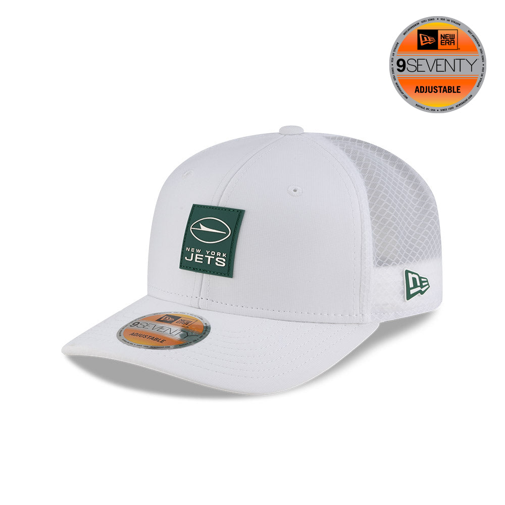 Esta gorra curva New Era 9SEVENTY de New York Jets de la colección NFL Sideline Hot Weather 2025 incorpora tecnología HOT que mejora el rendimiento y la comodidad: COOLERA con banda interior que absorbe la humedad y secado rápido para uso durante todo el día, DRYERA con tela repelente al agua y COMFORT con material ligero para una sensación suave y ajuste cómodo.