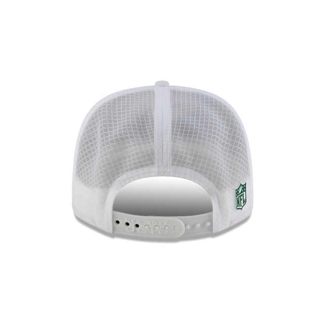 Presenta el logotipo de los Jets en silicón tipo engomado en los paneles frontales, malla trucker ligera para mejor ventilación, el logo de la NFL en la parte derecha de atrás y el flag de New Era engomado del lado izquierdo. Apoya a tu equipo y cómprala ya.