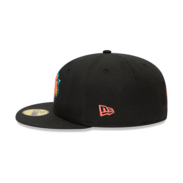 Esta gorra plana New Era 59FIFTY de New York Knicks de la colección NBA Black Neon presenta el logotipo de los Knicks bordado en los paneles frontales en colores neón, el logo de la NBA al reverso y el flag de New Era bordado del lado izquierdo. Cómprala ya.
