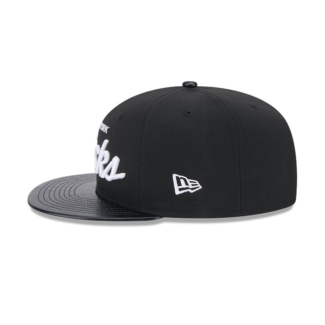Esta gorra New Era 9FIFTY de New York Knicks de la colección NBA Faux Leather presenta un diseño un diseño totalmente negro con la visera en un material tipo piel, el nombre de los Knicks bordado en los paneles frontales, el logo de la NBA del lado derecho y el flag de New Era bordado en el lado izquierdo. Luce con estilo y cómprala ya.