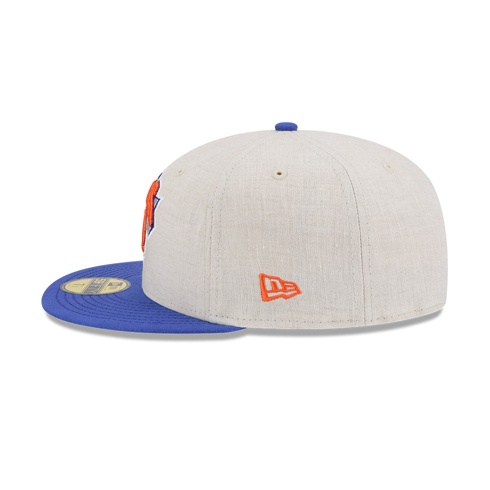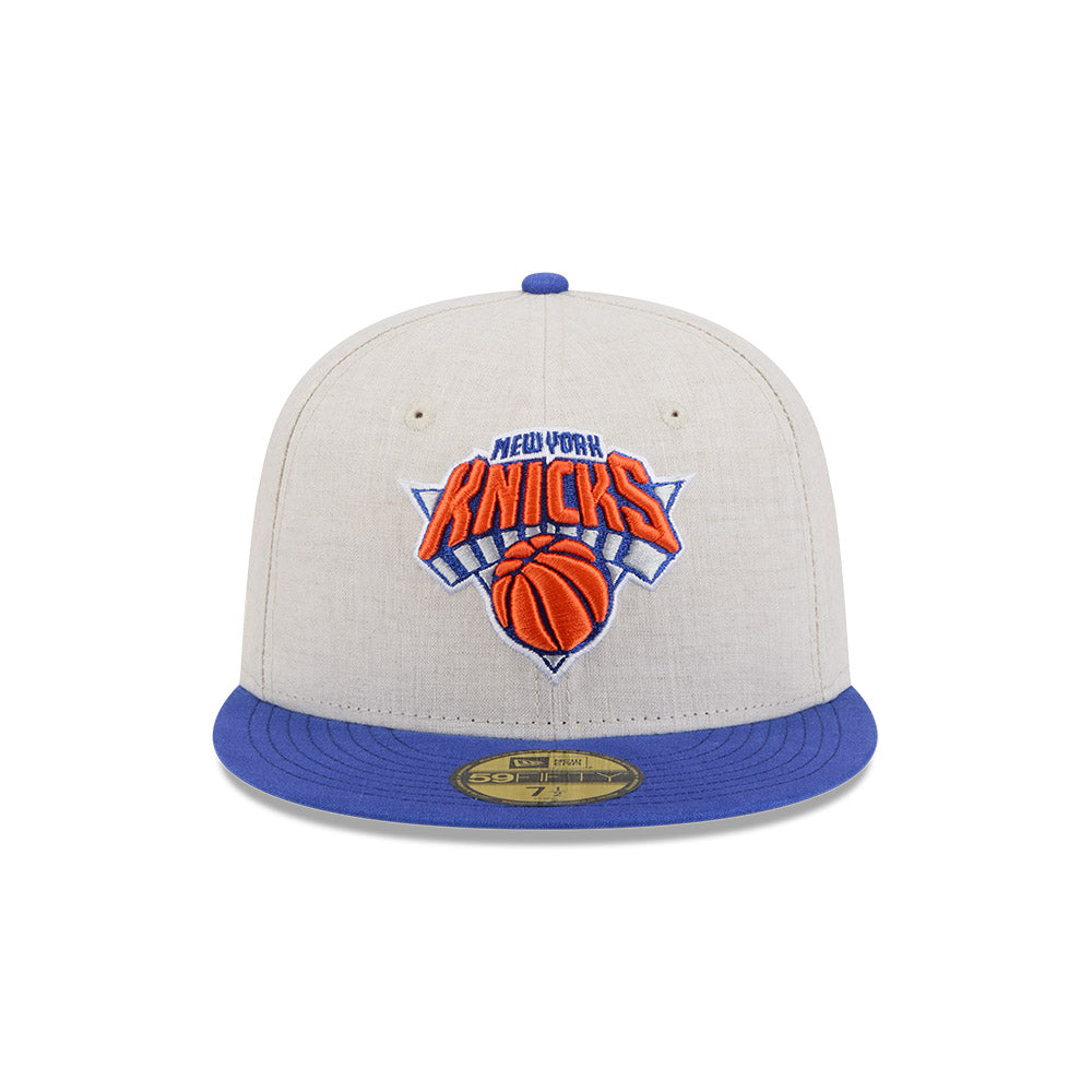 Esta gorra plana New Era 59FIFTY de New York Knicks de la colección NBA Linen presenta un diseño en lino con el logotipo de los Knicks bordado en los paneles frontales, la sede del equipo del lado derecho, el logo de la NBA al reverso y el flag de New Era bordado del lado izquierdo. Cómprala ya.