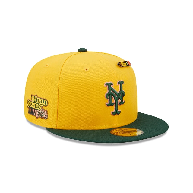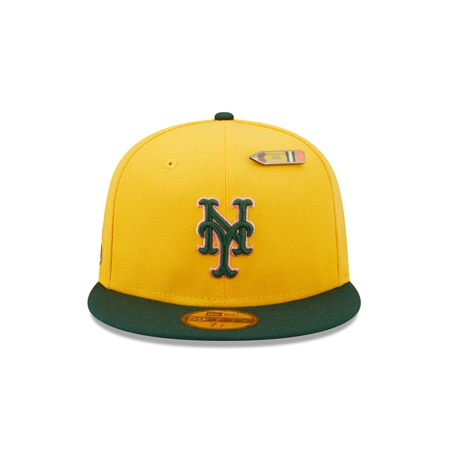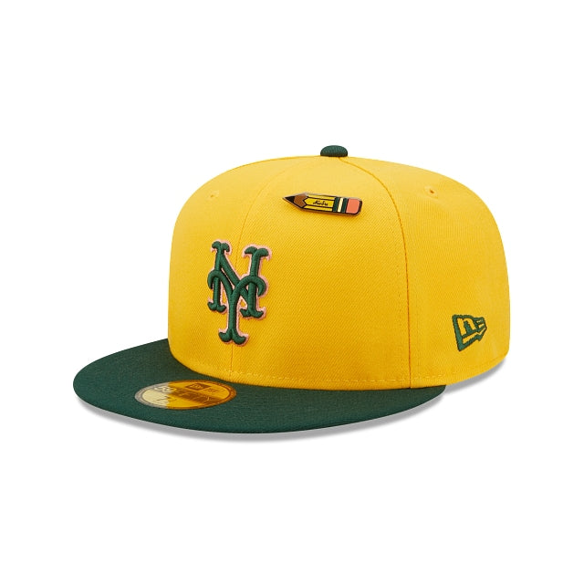 No olvides regresar a clases con esta gorra New Era 59FIFTY de New York Mets Back to School la cual presenta el logotipo de los Mets bordado en los paneles frontales y un parche de World Series en el lado derecho. Detalles adicionales incluyen un pin de lápiz amarillo y undervisor durazno. Cómprala ya.
