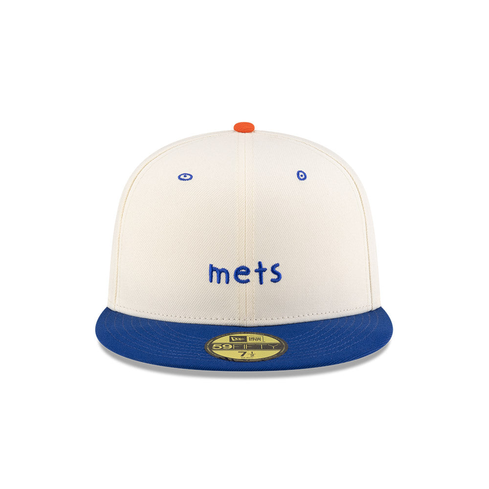Esta gorra plana New Era 59FIFTY de New York Mets de la colaboración Micah Johnson X MLB presenta el nombre de los Mets bordado en los paneles frontales, el casco del astronauta AKU del lado derecho, el MLB Batterman al reverso, la frase Ye of little faith, just watch bordada en el undervisor y el flag de New Era bordado del lado izquierdo. Cómprala ya.