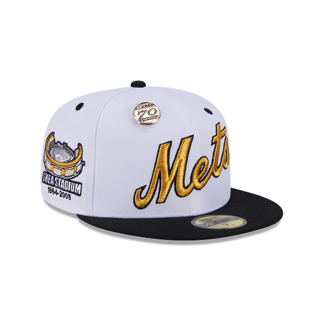 Celebra el 70 aniversario de la silueta que cambió el juego con esta gorra New Era 59FIFTY de New York Mets de la colección del New Era Cap 59FIFTY Day Collection que presenta una corona blanca con el nombre de los Mets en dorado bordado en los paneles frontales, el pin del 70 aniversario, un parche conmemorativo del lado derecho, el logo de la liga al reverso y el flag de New Era bordado en el lado izquierdo. No te pierdas este artículo de colección y cómprala ya.