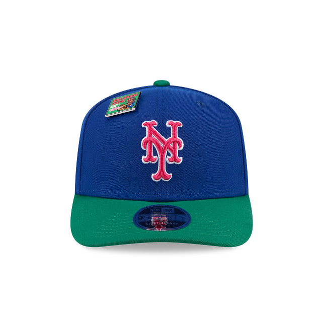 Esta gorra New Era 9SEVENTY de New York Mets de la colección MLB Big League Chew presenta un diseño con el logotipo de los Mets bordado en los paneles frontales, un pin de Big League Chew, logo de la marca BLC bordado del lado derecho y el flag de New Era bordado del lado izquierdo. Luce con estilo y cómprala ya.