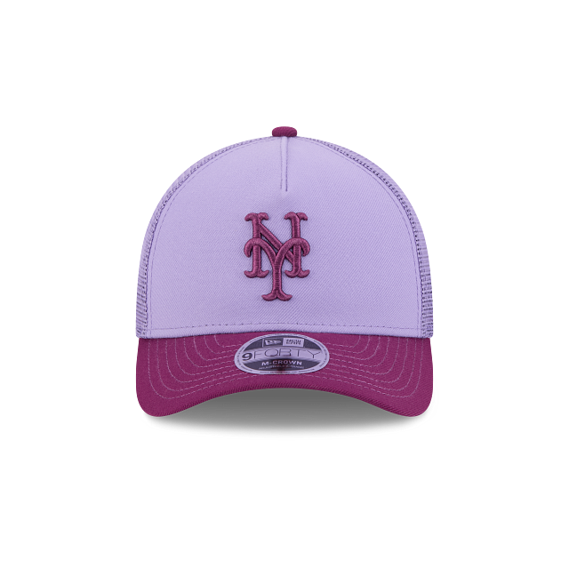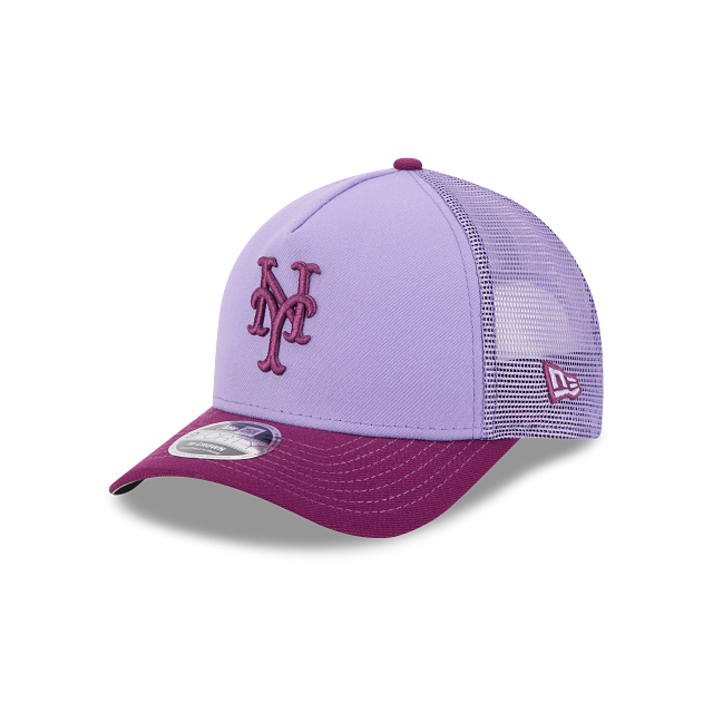 Esta gorra curva New Era 9FORTY M-Crown A-Frame de New York Mets de la colección MLB Color Pack presenta un diseño en color morado con el logotipo de los Mets bordado en los paneles frontales, malla trucker al reverso y el flag de New Era bordado del lado izquierdo. Cómprala ya.