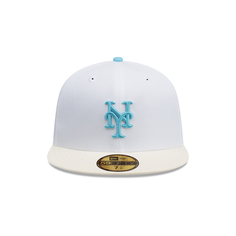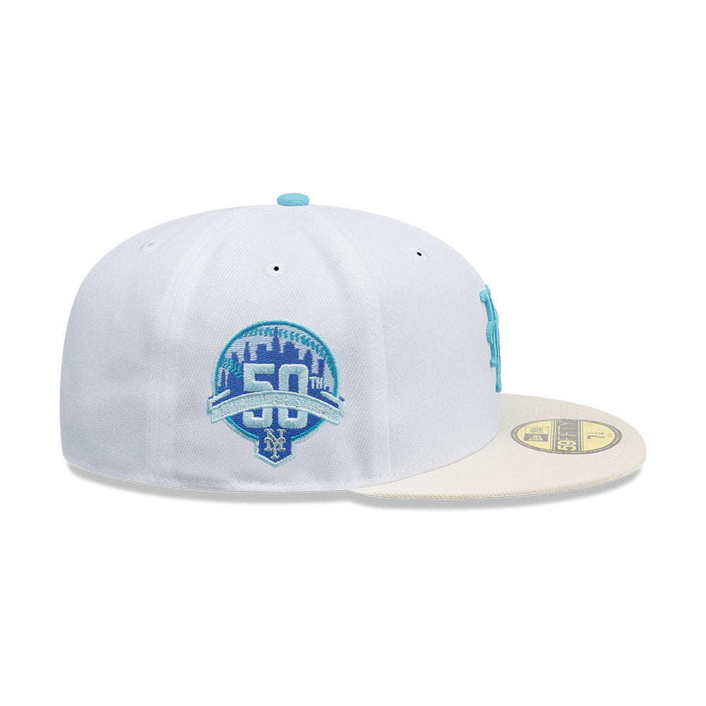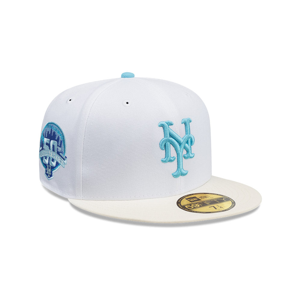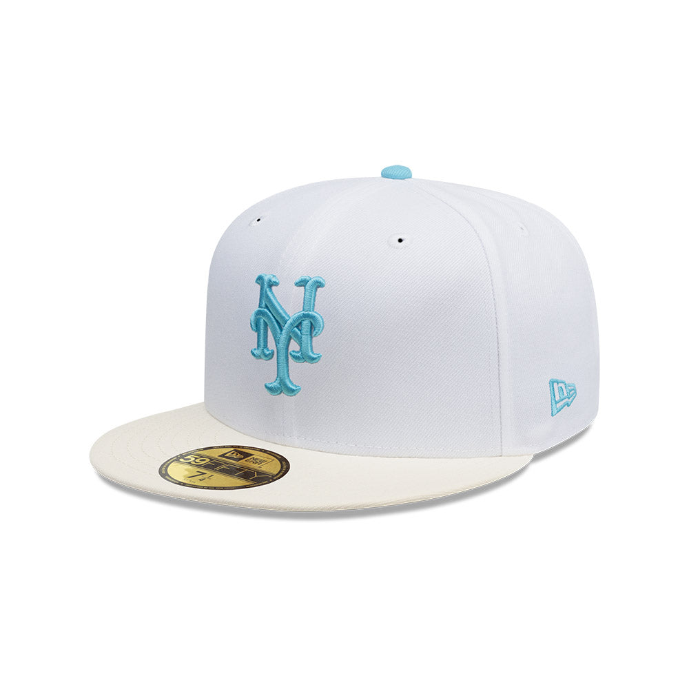 Esta gorra plana New Era 59FIFTY de New York Mets de la colección MLB Shaved Ice presenta un diseño en color blanco con el logotipo de los Mets bordado en los paneles frontales, parche conmemorativo del lado derecho, el MLB Batterman en la parte de atrás y el flag de New Era bordado del lado izquierdo. Luce con estilo y cómprala ya.