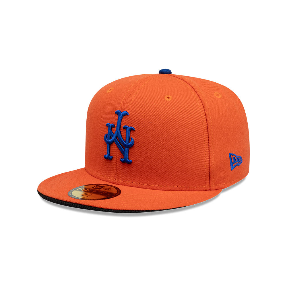 Esta gorra plana New Era 59FIFTY de New York Mets de la colección MLB Upside Down presenta un diseño en color naranja con el logotipo de los Mets bordado de forma volteada en los paneles frontales, el MLB Batterman al reverso y el flag de New Era bordado del lado izquierdo. Cómprala ya.