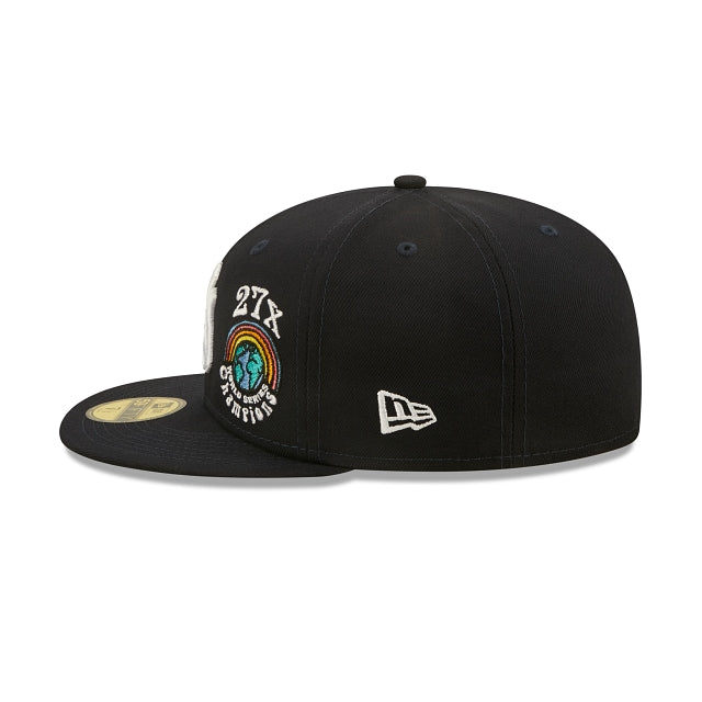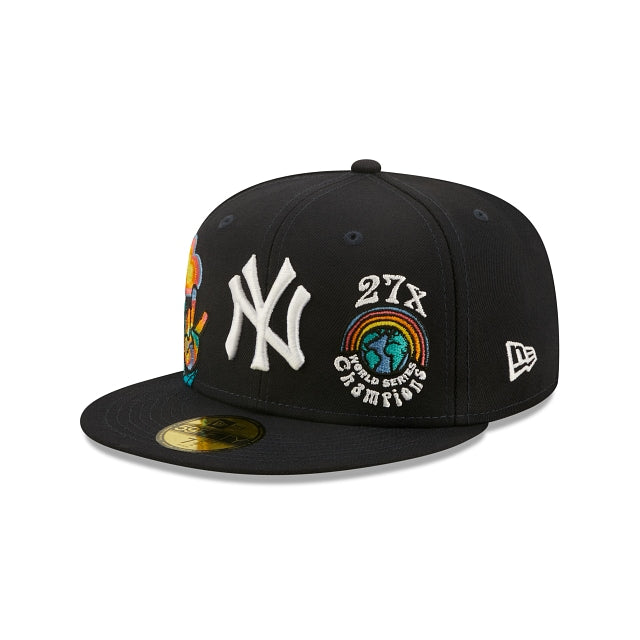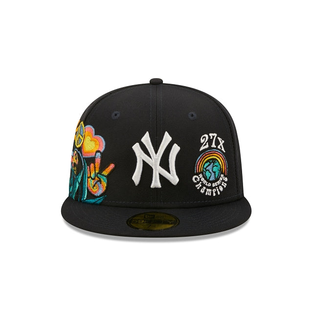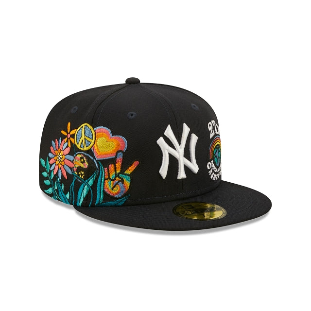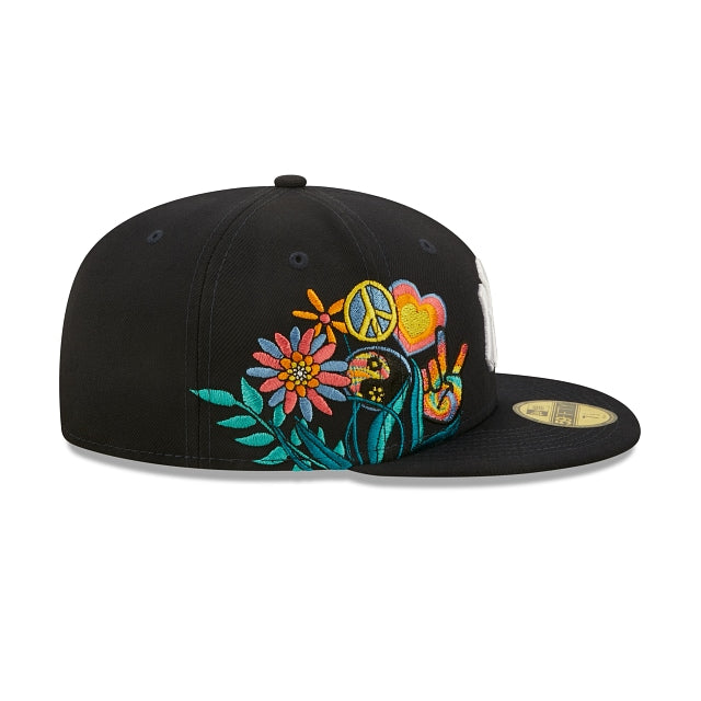 Esta 59FIFTY de New York Yankees de la colección Groovy presenta el logotipo de los Yankees bordado en los paneles frontales a juego con un parche de World Series Champions y un diseño de peace and love floral en el lado derecho. Detalles adicionales incluyen undervisor azul. Cómprala ya.
