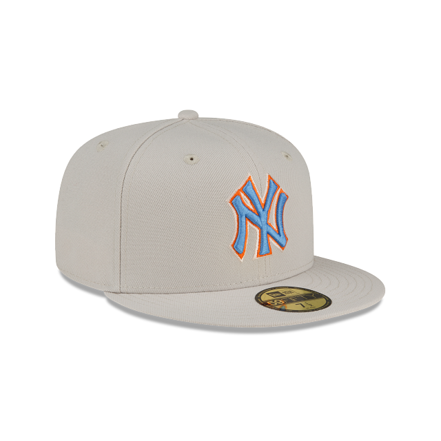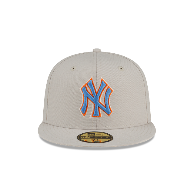 Esta gorra New Era 59FIFTY de New York Yankees de la colección Just Caps Drop 16 en color gris presenta el logo de los Yankees bordado en los paneles frontales en detalles azul, blanco y naranja, la silueta plana presenta el undervisor en color naranja y el Batterman en la parte trasera. Cómprala ya.