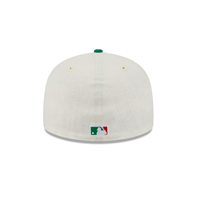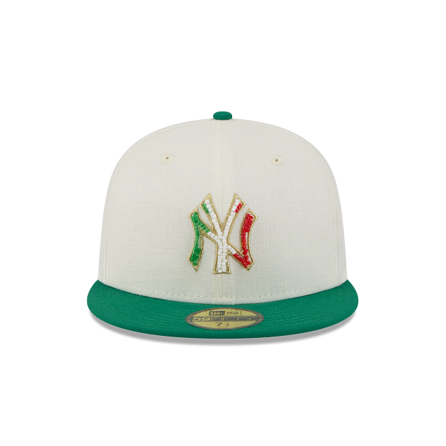 Esta gorra plana New Era 59FIFTY de New York Yankees de la colección MLB Beaded Linen presenta un diseño en lino inspirado en los colores patrios con el logotipo de los Yankees relleno de cuentas en los paneles frontales, el nombre del equipo del lado derecho, el MLB Batterman al reverso y el flag de New Era bordado del lado izquierdo. Cómprala ya.