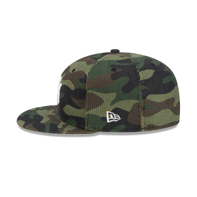 Esta gorra plana New Era 59FIFTY de New York Yankees de la colección MLB Camo Cord presenta un diseño en pana con patrón de camuflaje, el logotipo de los Yankees bordado en los paneles frontales, el MLB Batterman al reverso y el flag de New Era bordado del lado izquierdo. Cómprala ya.