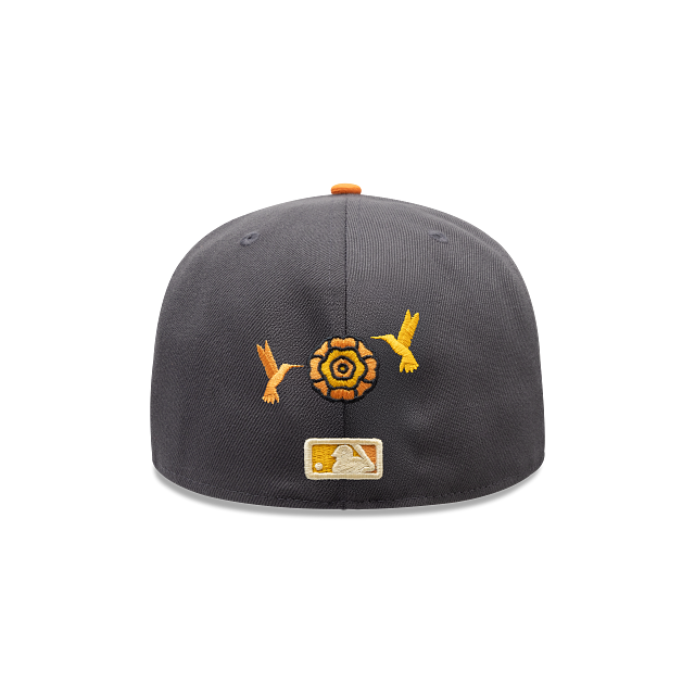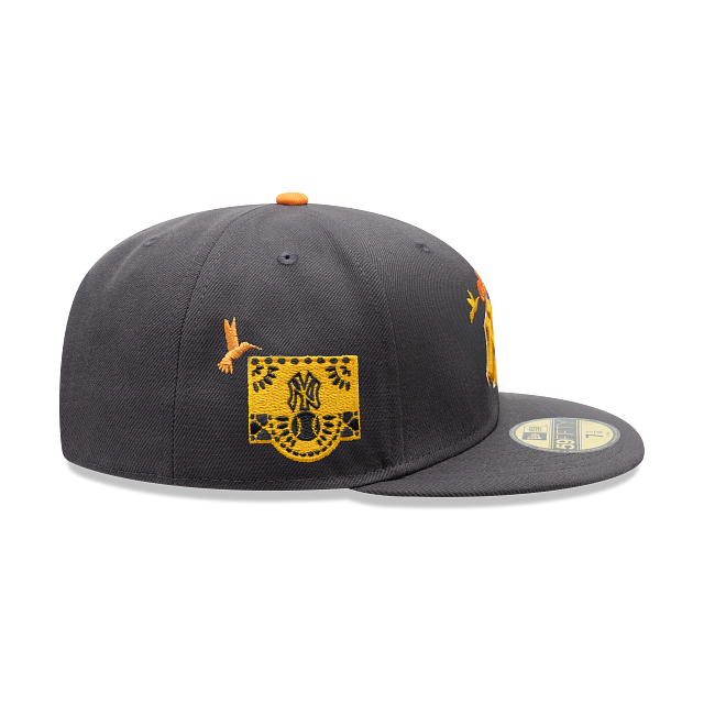 Esta gorra plana New Era 59FIFTY de New York Yankees de la colección MLB Day Of The Dead presenta un diseño para conmemorar el Día de Muertos, flores de cempasúchil y debajo el logotipo de los Yankees bordado en los paneles frontales, papel picado con el logo del equipo del lado derecho, el MLB Batterman en la parte de atrás y el flag de New Era bordado del lado izquierdo. Cómprala ya.
