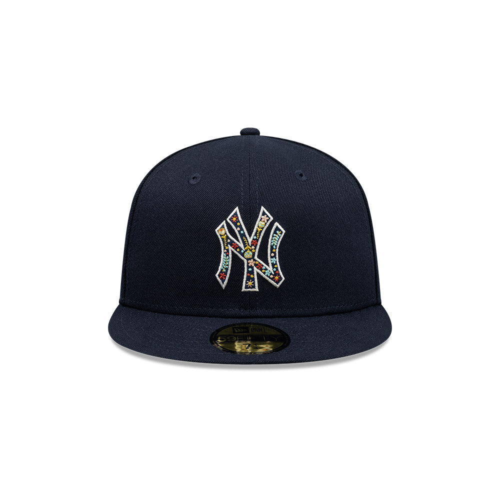 Esta gorra plana New Era 59FIFTY de New York Yankees de la colección MLB Floral Infilled presenta un diseño en color azul con el logotipo de los Yankees relleno de flores bordado en los paneles frontales, un parche conmemorativo del lado derecho, el logo del equipo y el MLB Batterman al reverso y el flag de New Era bordado del lado izquierdo. Cómprala ya.
