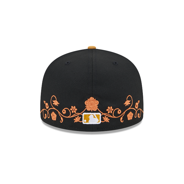 Esta gorra New Era 59FIFTY de New York Yankees de la colección MLB Floral Vine presenta un diseño two tone con la corona negra que contrasta con la visera y las flores bordadas en la parte baja alrededor, el logotipo de los Yankees bordado en los paneles frontales, el MLB Batterman al reverso y el flag de New Era bordado en el lado izquierdo. Luce con estilo y cómprala ya.