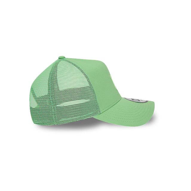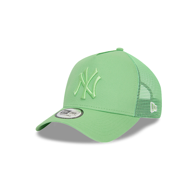 Esta gorra New Era 9FORTY AF Trucker de New York Yankees de la colección MLB League Essentials presenta un diseño en color totalmente verde con el logotipo de los Yankees bordado en los paneles frontales, malla al reverso y broche de plástico ajustable, y el flag de New Era bordado en el lado izquierdo. Dale un toque a tu estilo y cómprala ya.