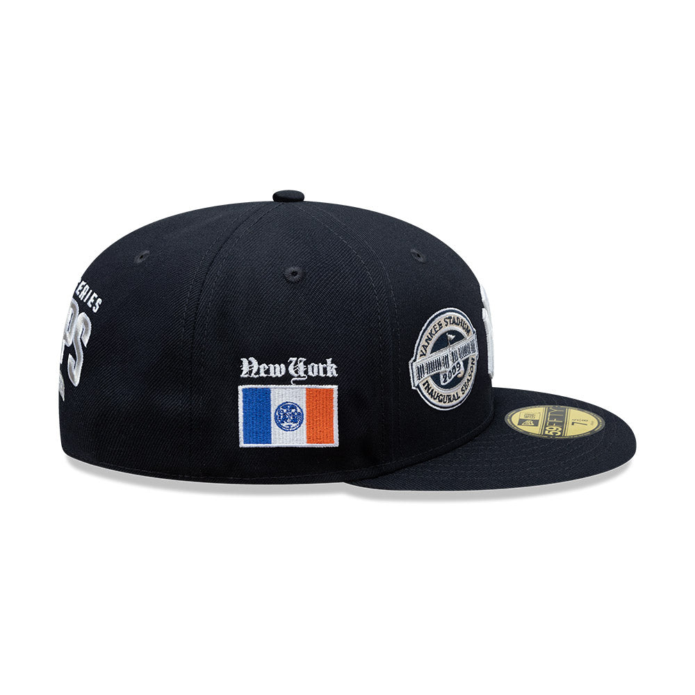 Esta gorra plana New Era 59FIFTY de New York Yankees de la colección MLB Many Patches presenta un diseño con el logotipo de los Yankees bordado en los paneles frontales acompañado de parches significativos del equipo, un bordado World Series Champions y el MLB Batterman al reverso, y el flag de New Era bordado del lado izquierdo. Cómprala ya.