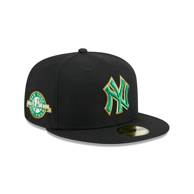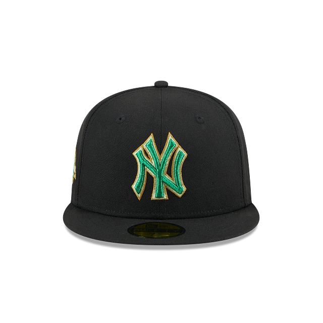 Esta gorra New Era 59FIFTY de New York Yankees de la colección MLB Metallic Green Pop presenta un diseño en color negro con el logotipo de los Yankees en verde con contorno dorado bordado en los paneles frontales, un parche conmemorativo del lado derecho, undervisor verde y el flag de New Era bordado en el lado izquierdo. Luce con estilo y cómprala ya.