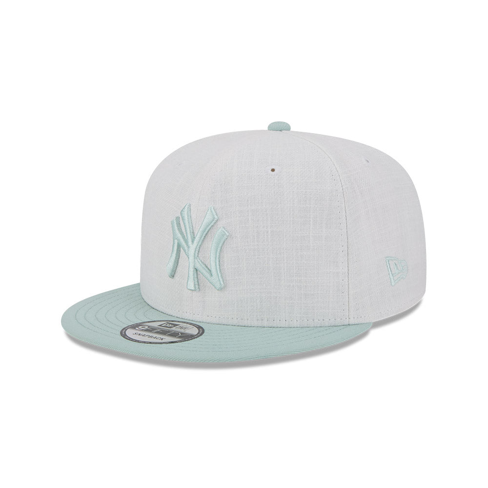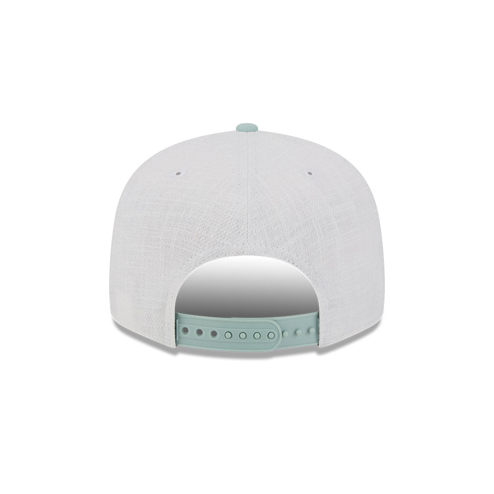 Esta gorra New Era 9FIFTY de New York Yankees de la colección MLB Minty Breeze presenta la corona blanca tejida con fibra natural y la visera en tono menta con el logotipo de los Yankees bordado en los paneles frontales, un parche conmemorativo del lado derecho y el flag de New Era bordado en el lado izquierdo. Luce con estilo y cómprala ya.