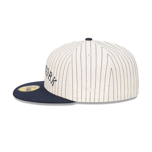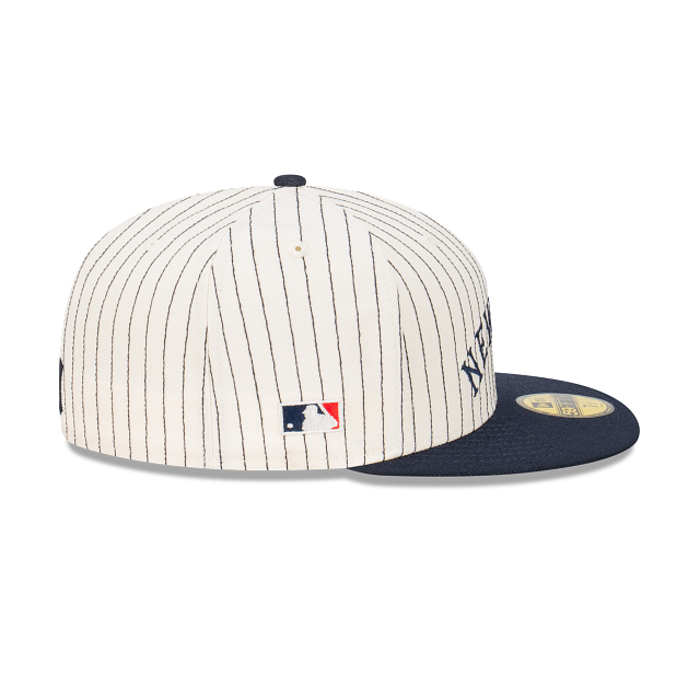 Esta gorra New Era 59FIFTY de New York Yankees de la colección MLB Pinstripe presenta un diseño pinstripe en una corona blanca con el nombre de los Yankees bordado en los paneles frontales, el logotipo al reverso y el MLB Batterman del lado derecho, y el flag de New Era bordado en el lado izquierdo. Luce con estilo y cómprala ya.