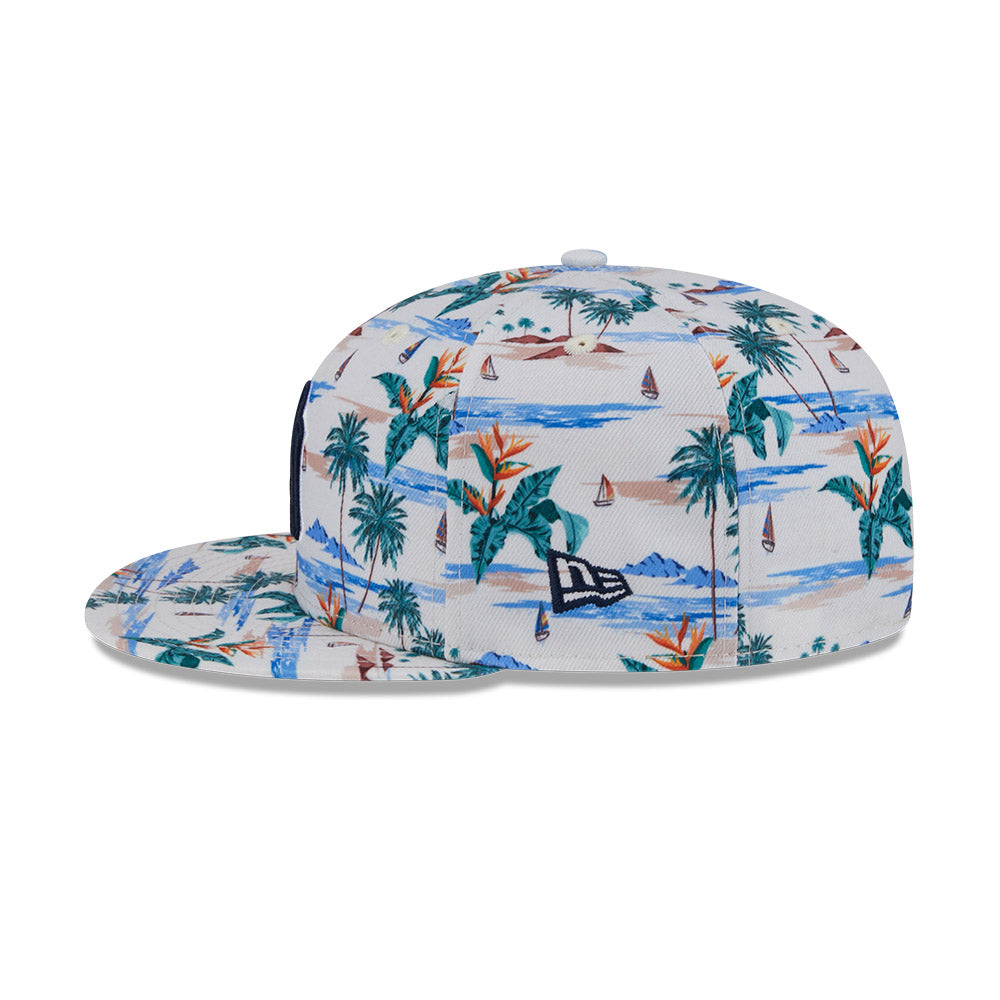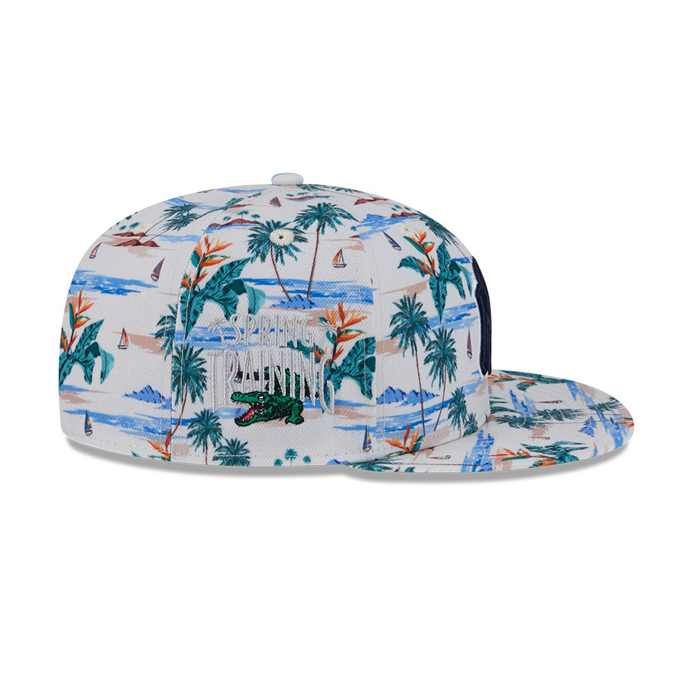 Esta gorra plana New Era 9FIFTY de New York Yankees de la colección MLB Spring Training Fan Pack 2025 presenta un all over print de un paisaje tropical con el logotipo de los Yankees bordado en los paneles frontales, Spring Training bordado del lado derecho y el flag de New Era bordado del lado izquierdo. Cómprala ya.