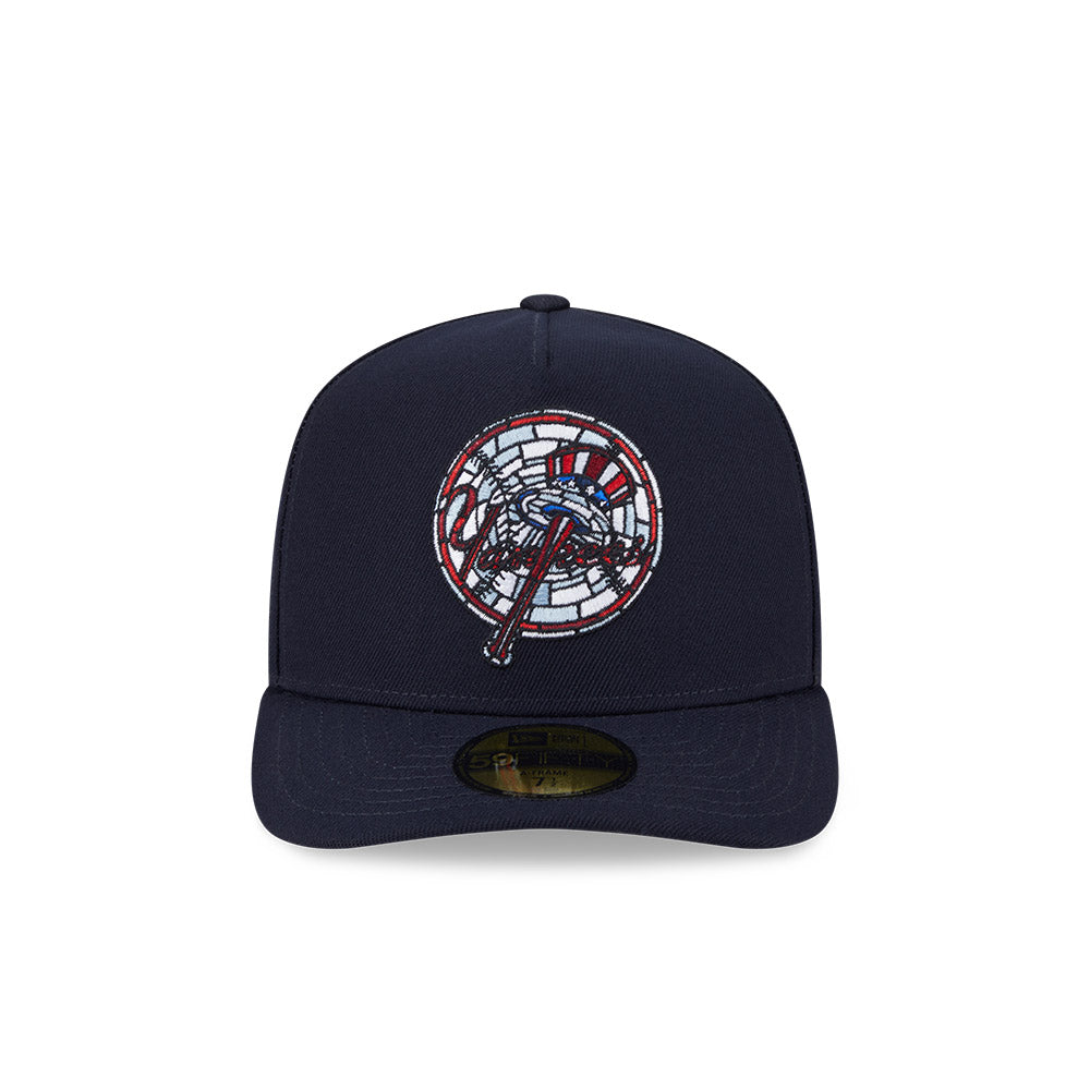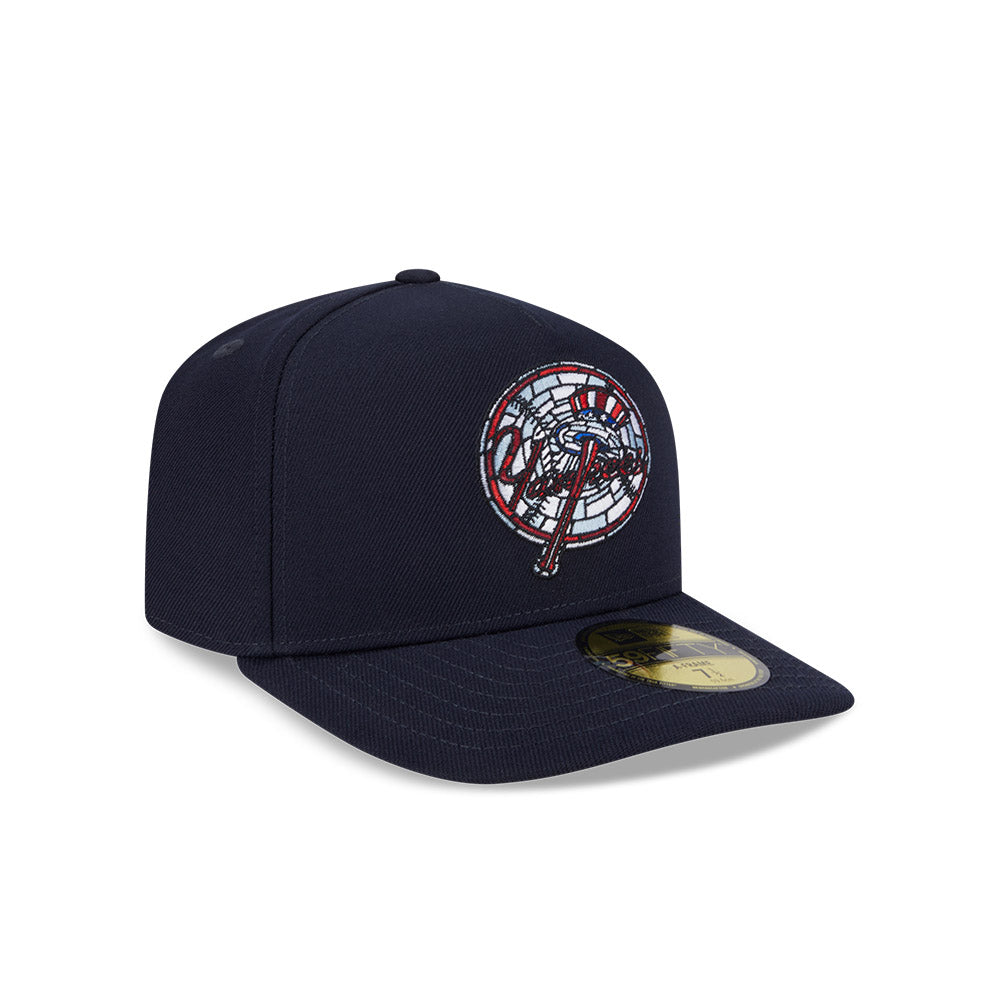 Esta gorra pre curveada New Era 59FIFTY A-Frame de New York Yankees de la colección MLB Stained Glass presenta el logotipo de los Yankees con efecto de vitral bordado en los paneles frontales, el MLB Batterman y logo del equipo al reverso, y el flag de New Era bordado del lado izquierdo. Cómprala ya.