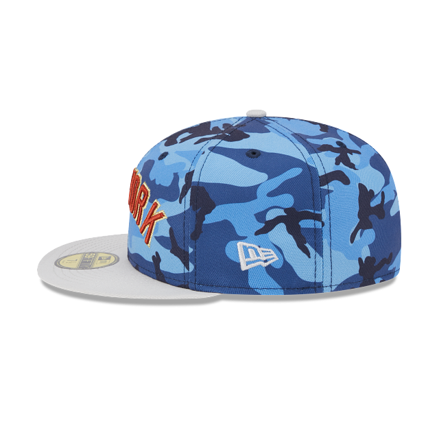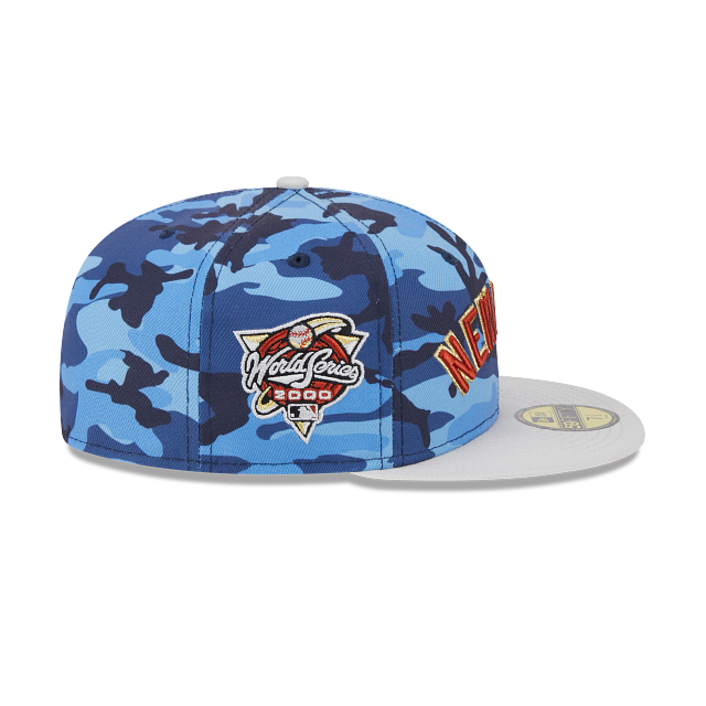 Esta gorra New Era 59FIFTY de New York Yankees de la colección MLB Urban Blue Camo presenta un diseño de camuflaje azul con el nombre de los Yankees bordado en los paneles frontales, un parche conmemorativo del lado derecho, visera gris y el flag de New Era bordado en el lado izquierdo. Luce con estilo y cómprala ya.