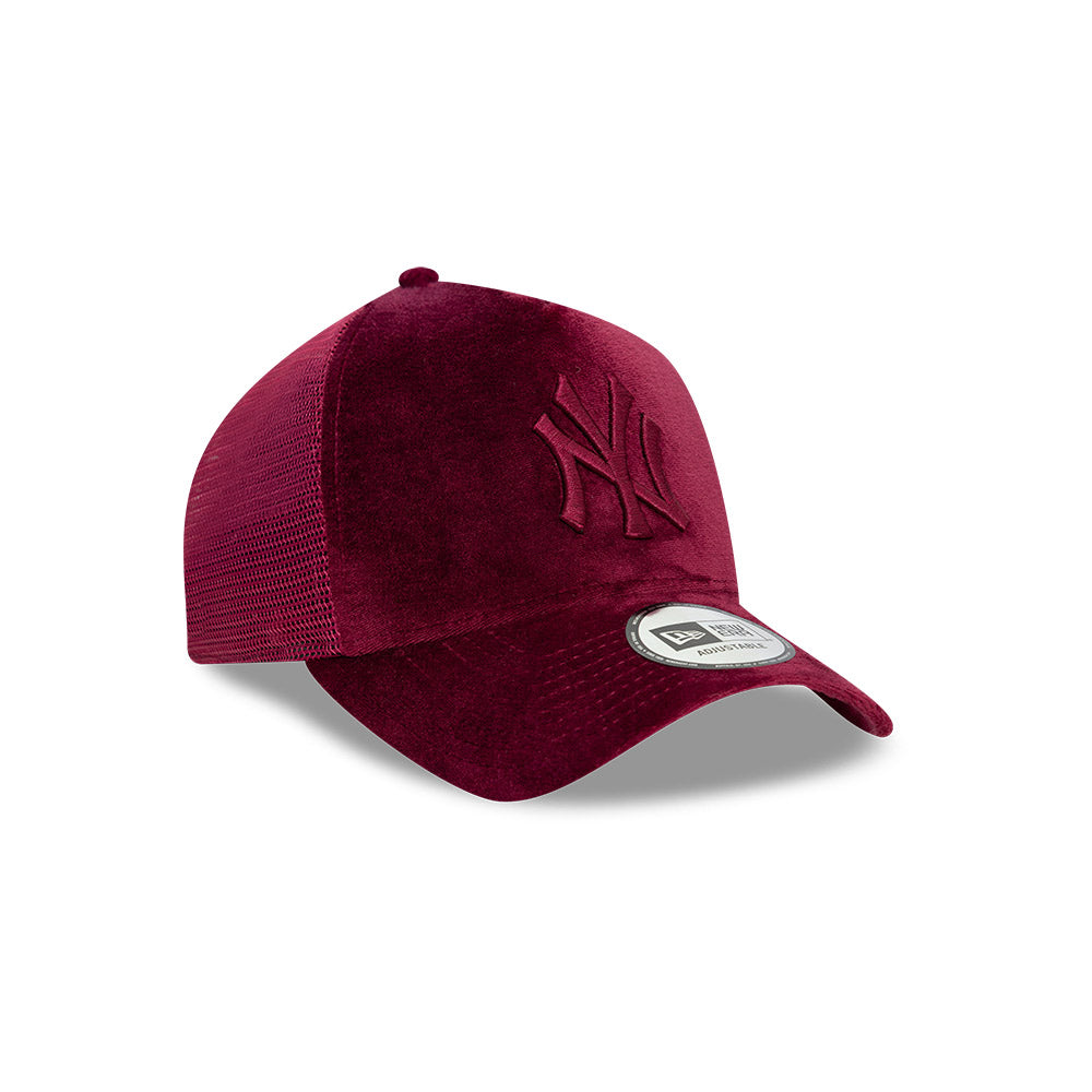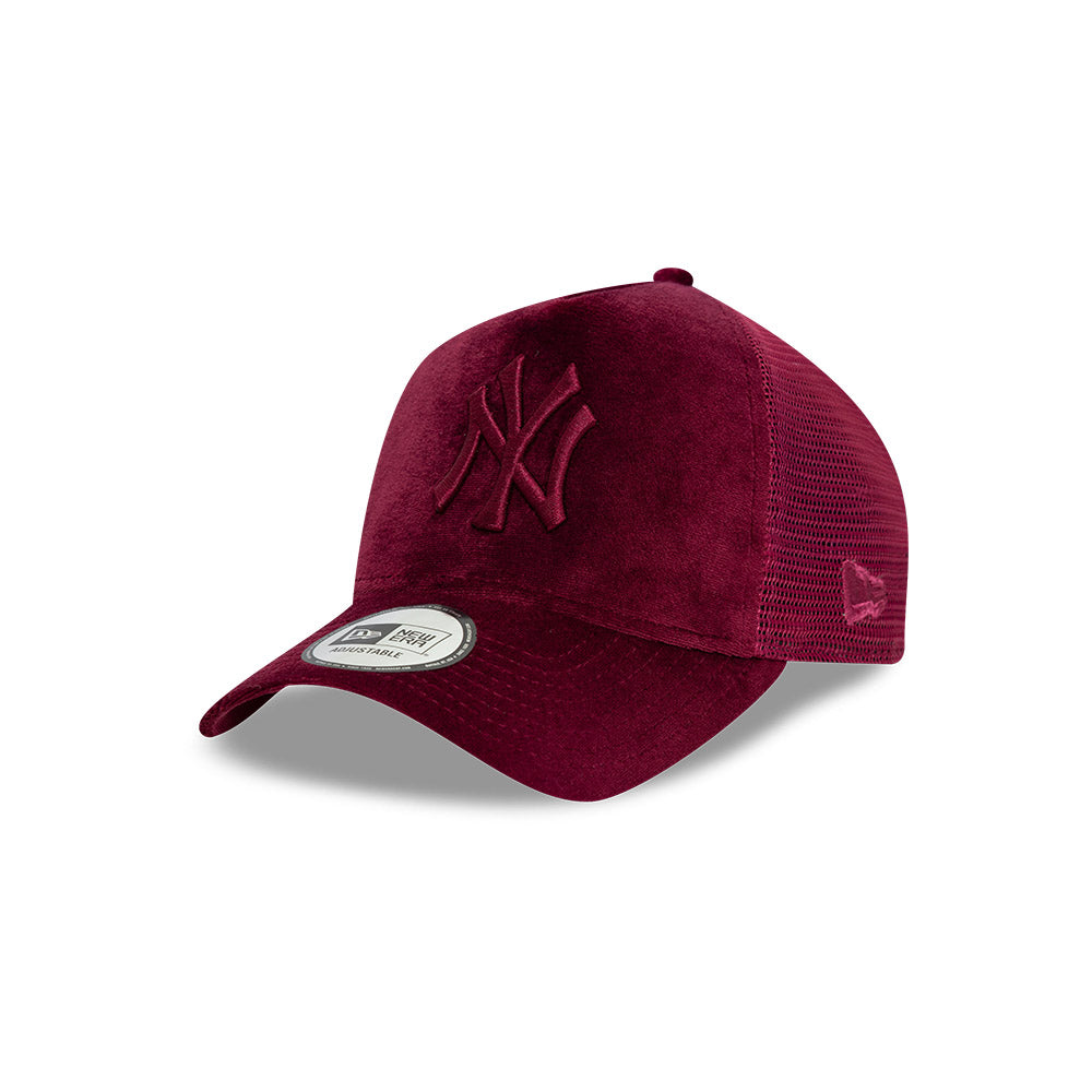 Esta gorra curva New Era 9FORTY A-Frame de New York Yankees para Mujer de la colección MLB Women's Velour presenta un diseño en terciopelo con el logotipo de los Yankees bordado en los paneles frontales, malla trucker al reverso y el flag de New Era bordado del lado izquierdo. Cómprala ya.