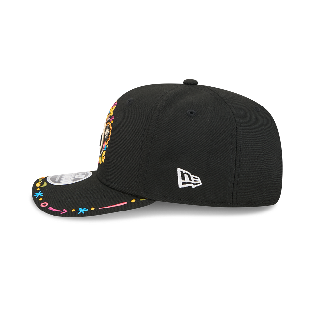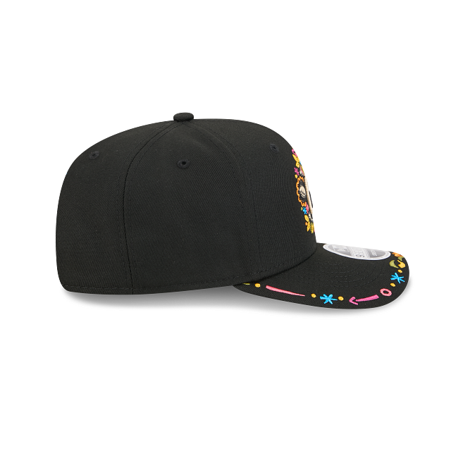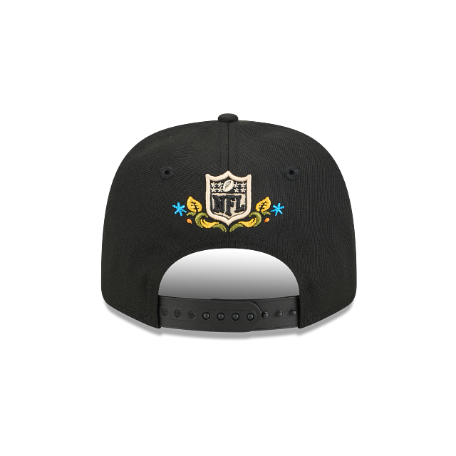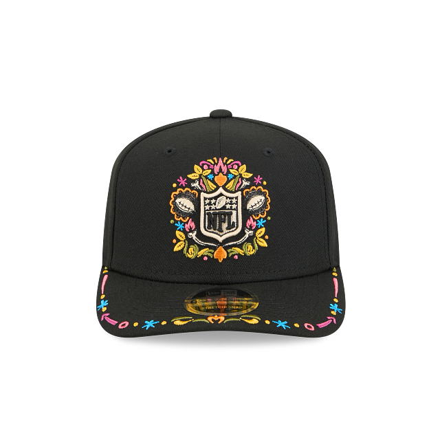 Esta gorra curva New Era 9SEVENTY Stretch Snap de la colección NFL Hasta la Muerte presenta un diseño inspirado en el Día de Muertos, el logotipo de la NFL bordado en los paneles frontales, el logo de la NFL en la parte de atrás y el flag de New Era bordado del lado izquierdo. Cómprala ya.
