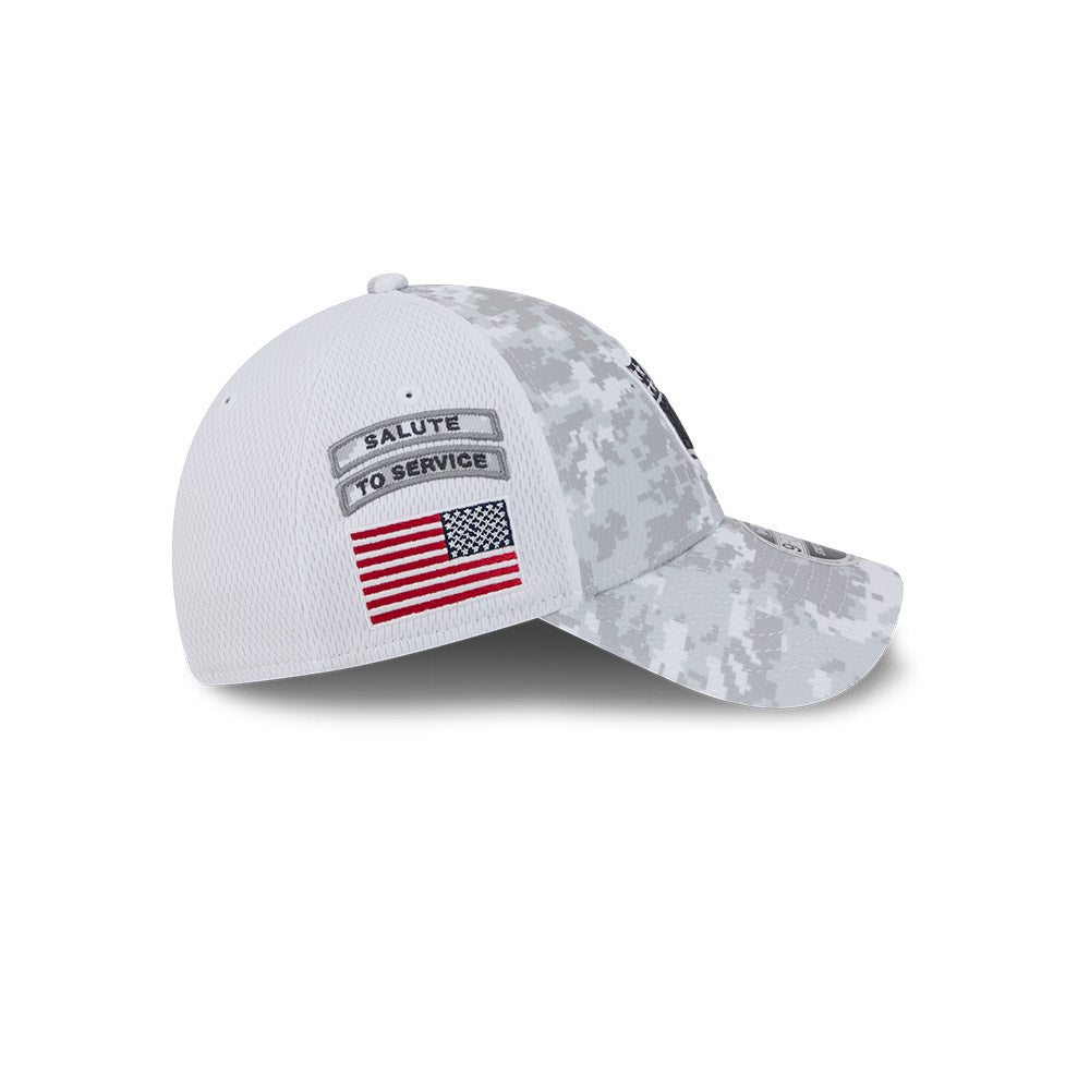 Esta gorra curva New Era 9FORTY de NFL de la colección Salute to Service 2024 presenta un diseño de camuflaje con el logotipo de la NFL bordado en los paneles frontales, la bandera de Estados Unidos del lado derecho, el logo de la NFL al reverso y el flag de New Era bordado del lado izquierdo. Apoya a tu equipo y cómprala ya.