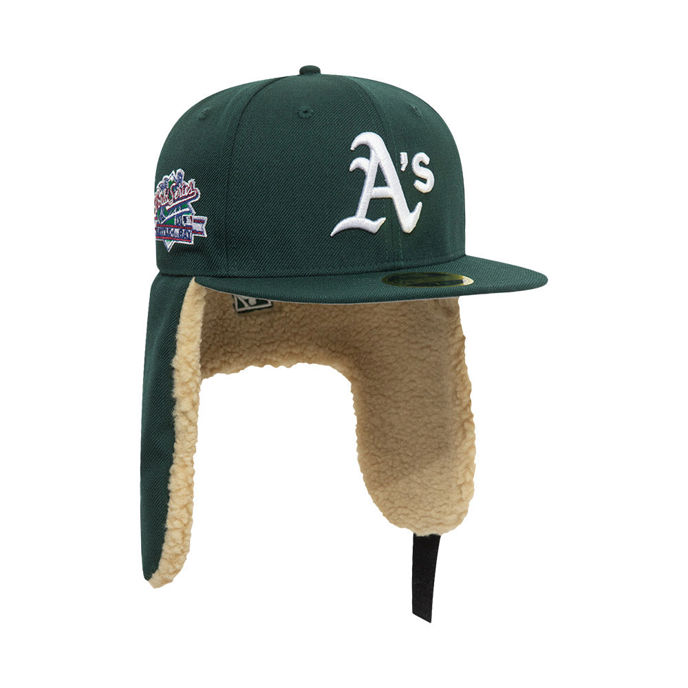 Esta gorra plana New Era 59FIFTY de Oakland Athletics de la colección MLB Dogear presenta el logotipo de los Athletics bordado en los paneles frontales, un parche World Series del lado derecho, unas orejeras a los lados y el flag de New Era bordado del lado izquierdo. Cómprala ya.