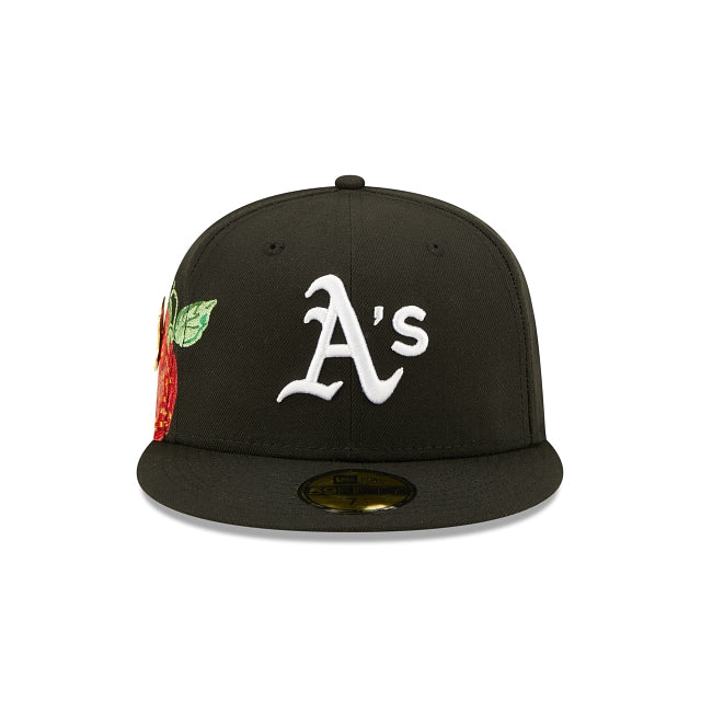 Esta gorra New Era 59FIFTY de Oakland Athletics MLB Fruit presenta el logotipo de los Athletics en los paneles frontales, el logo de MLB Batterman en la parte trasera y una fruta bordada en el lado derecho. Detalles adicionales incluyen un pin de World Series. Cómprala ya.